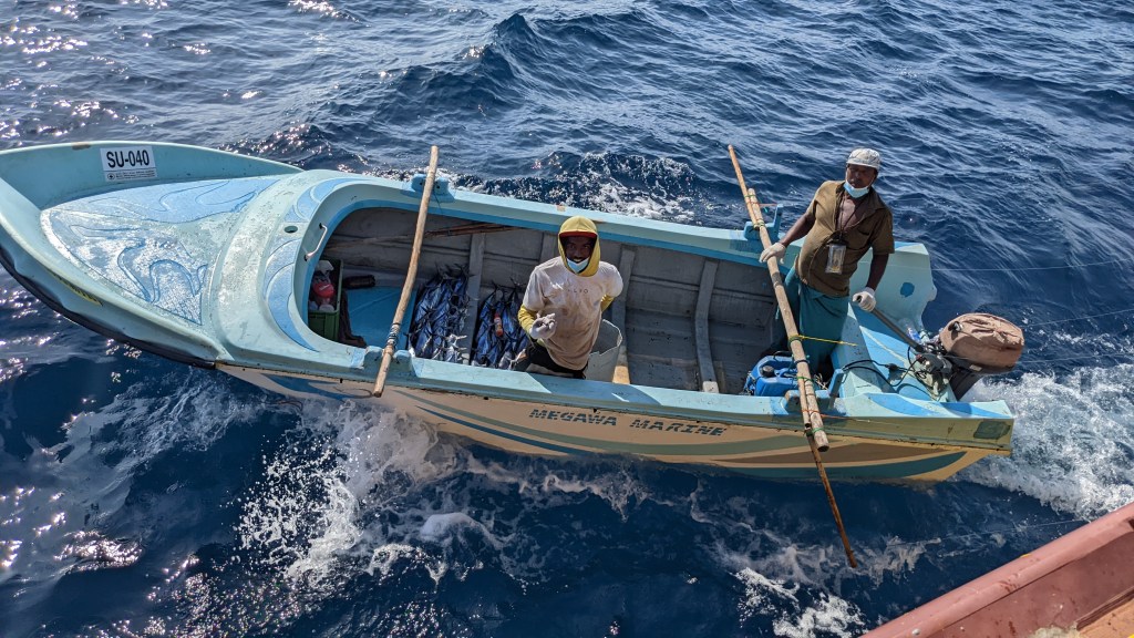 Hinsichtlich Wal-, Delfin- oder Schildkrötenbeobachtung gibt es leider in Sri Lanka keine Regulationen und Bestimmungen bezüglich Tierschutz. Deshalb habe ich mich selbst auf die Suche gemacht und ein Unternehmen herausgesucht, das die Tiere nicht zu sehr stört und gut behandelt. Mir ist es wichtig, dass liebevoll mit ihnen umgegangen wird. Zum Glück bin ich auch fündig geworden und dann haben wir gleich gebucht. Eine Wal- und Delfinbeobachtungstour, die um 6 Uhr in der Früh startet. Das Unternehmen nennt sich „Raja & the Whales“ und ist ein Familienbetrieb. Mehrere einheimische Brüder haben sich zusammengetan, haben zwei Boote und machen diese Beobachtungstouren. Es wird hier kein Sonar oder andere Hilfsmittel zur Suche verwendet. Die Brüder haben Kontakte zu vielen Fischern und sie sprechen sich ab, wann und wo jemand einen Wal gesehen hat – so wie die Brüder und Fischer haben auch wir nur mit den Augen gesucht. Das finde ich wirklich sehr schön und es freut mich, dass wir die Tiere somit nicht gestört haben.