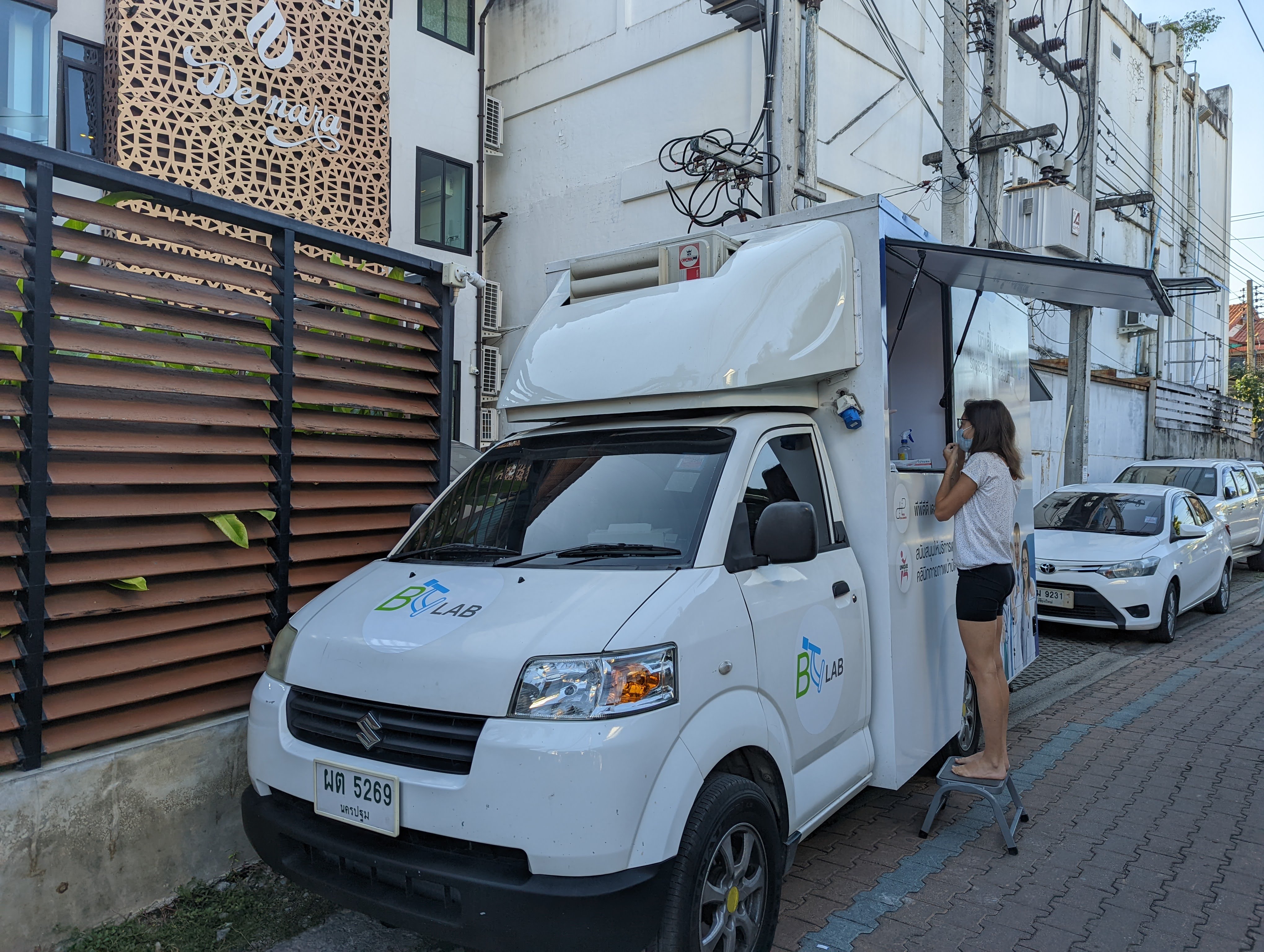 So wie an Tag 1 mussten wir auch an Tag 5 einen PCR-Test machen und bis zum Erhalt des Ergebnisses im Hotelzimmer in Quarantäne bleiben. Wir haben den Test gleich in der Früh gemacht, damit wir bald wieder frei sind. Für den Test mussten wir nicht lange herumfahren oder suchen, es ist ein kleiner Test-LKW vor das Hotel gekommen. Die Rezeptionistin hat uns angerufen als er da war und dann sind wir schnell raus – einmal in der Nase und einmal in den Mund und wir waren wieder fertig. Nun hieß es aber Quarantäne und wir mussten im Zimmer bleiben und hoffen, dass wir bald wieder frei sind. Vom Hotel haben wir 2 Bananen und frisches Wasser als Snack erhalten.