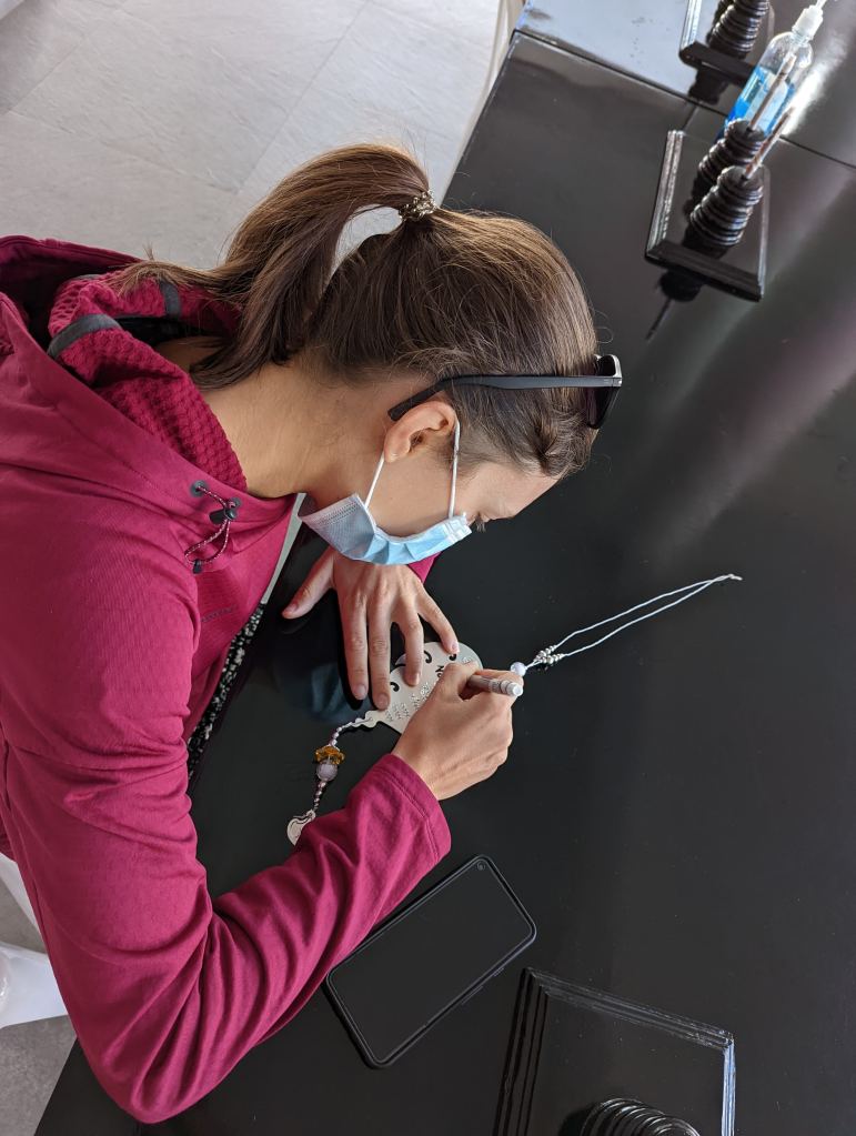 Aufgrund des Valentinstags haben wir bei diesem Tempel etwas Besonderes gemacht. Wir haben bereits vorab gesehen, dass bei den überdachten Gängen ganz viele Herzen hängen – das hat uns gut gefallen. Als wir dann ein kleines Ständchen entdeckt haben, das „Lucky Bodhi Leaf„s verkauft, konnten wir nicht widerstehen. Diese Blätter vom Bodhi-Baum, unter dem Buddha seine Erleuchtung hatte, sollen Glück bringen. Da wir das auf unserer Reise und für unsere gesamte Zukunft gut gebrauchen können, haben wir zur Feier des Tages ein Blatt gekauft. Man schreibt dann seine Wünsche und den Namen drauf und hängt es auf einem Baum. Wir haben „Happy Valentinesday“ darauf geschrieben. So haben wir uns bei diesem White Temple verewigt und sollten wir wieder mal herkommen, könnten wir unser Blatt suchen! Ich habe mich über diese kleine Geste sehr gefreut und werde es mein Leben lang nicht vergessen, dass wir am Valentinstag 2022 ein Glücksblatt beim weißen Tempel in Chiang Rai beschriftet und aufgehängt haben.