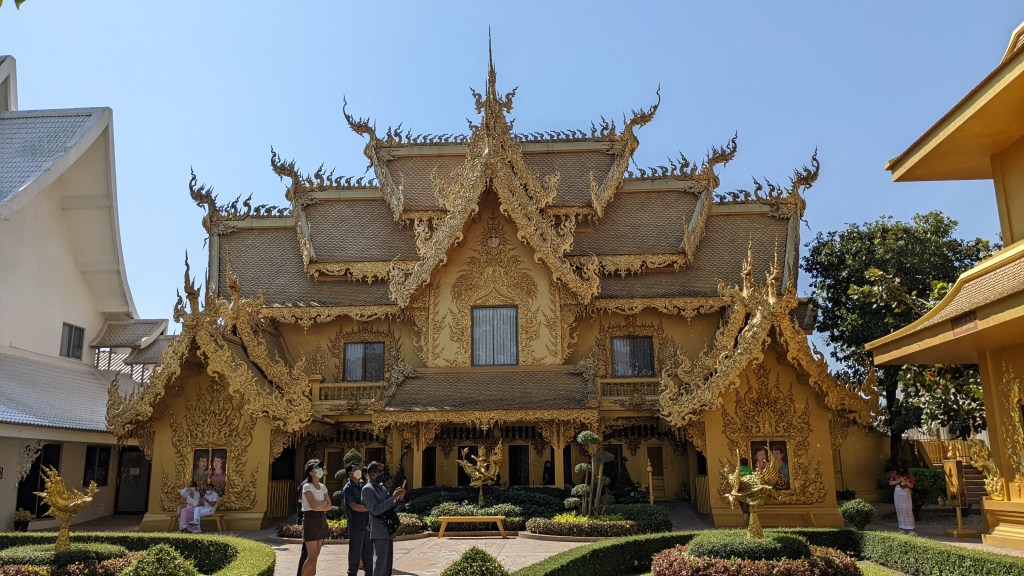 Was auch noch sehr spannend ist, ist das Bauwerk rund um die Toiletten. Ein großes goldenes Gebäude beherbergt nämlich die Toiletten – das ist auch sehr schön und ich war noch nie in einem so golden verzierten Klo.