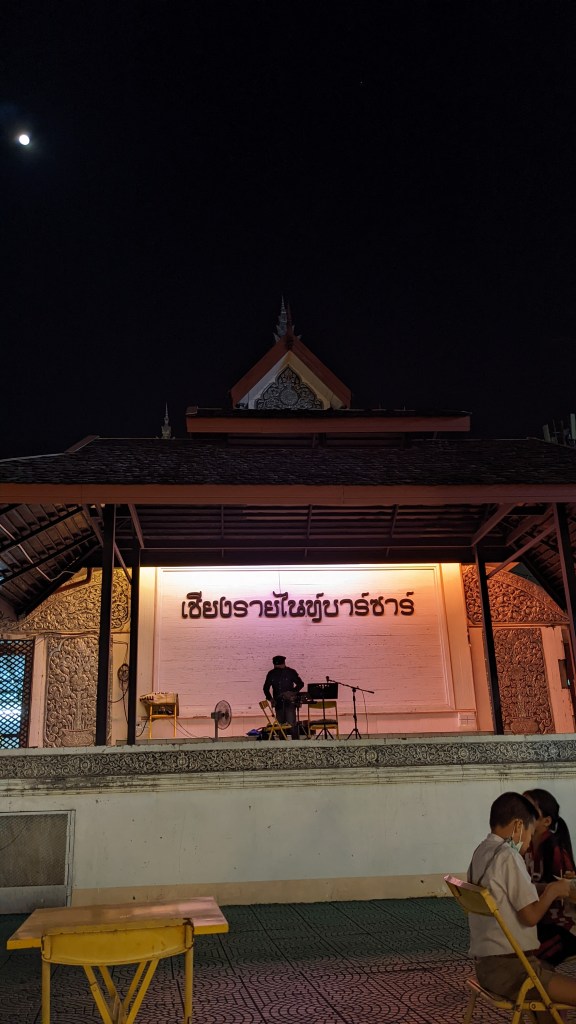 Das Abendessen werde ich auch nie vergessen. Bei Live-Musik haben wir am Chiang Rai Night Bazar eine Hotpot Soup zu uns genommen. Das essen die Einheimischen dort auch in Unmengen. Auf Kohle wird in einem Tontopf Suppe gekocht und in diese Suppe gibt man Gemüse und Fleisch. Wenn alles gekocht ist, schöpft man das Gemüse mitsamt der Suppe heraus und löffelt die Spezialität. Man kann es mit einem Fondue vergleichen. Es war herrlich lecker und ein wunderschöner Abschluss von unserem ganz besonderen Valentinstag 2022.