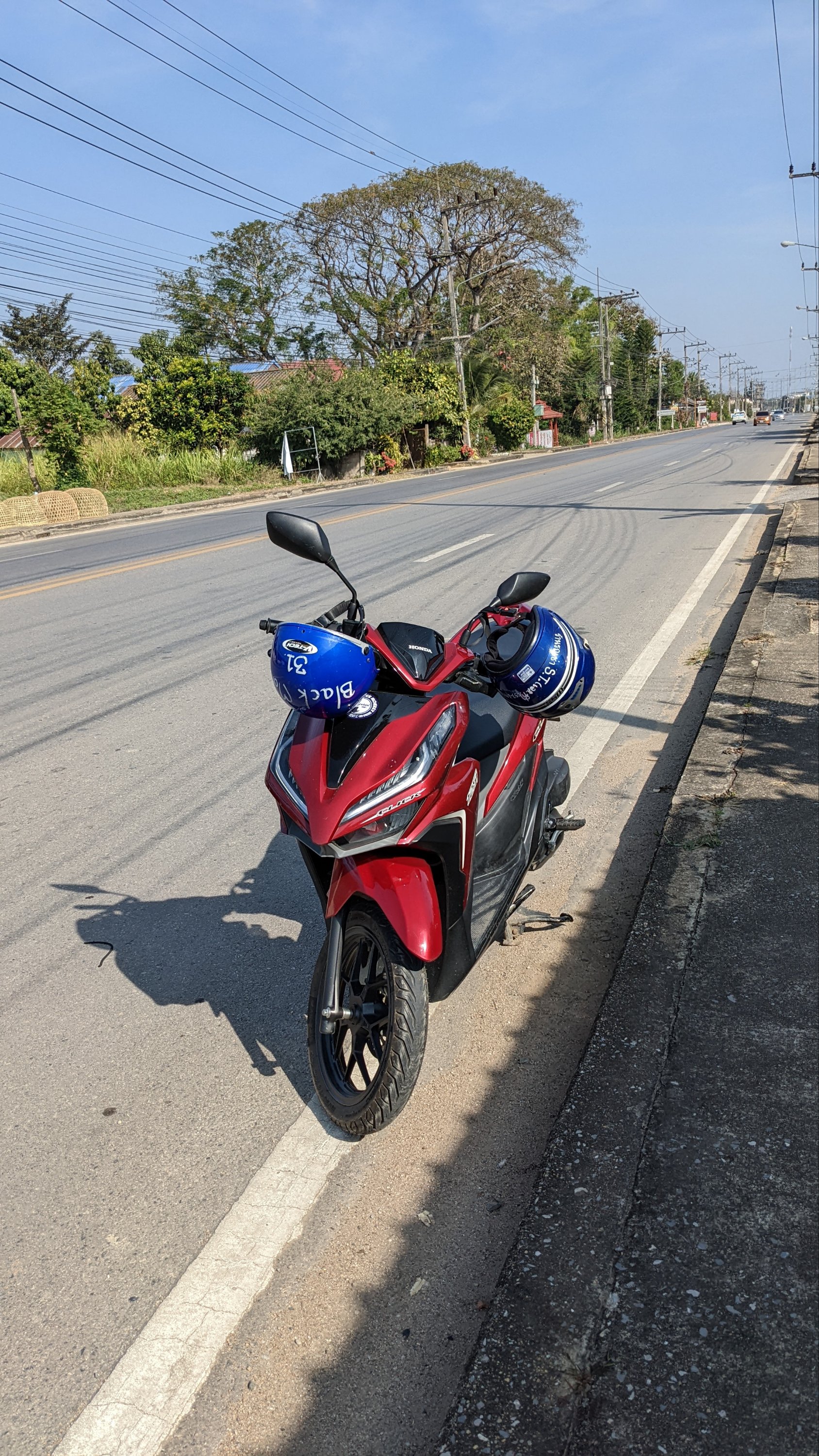 Nachdem fuhren wir noch zur Tankstelle um den Tank für die Weiterfahrt zu füllen und wir haben gegen den Hunger Kleinigkeiten gesnackt. Wir wollten wieder bald weiterfahren, damit wir nicht zu spät ankommen. René ist wieder gestartet und ich bin dann den Rest nach Pai gefahren. Nach über 300 km Fahrt sind wir ziemlich müde aber sehr glücklich angekommen. Es war ein bisschen wie nach Hause kommen, weil wir bereits vorher in Pai waren. Wir waren sehr froh, dass wir es geschafft haben und nichts passiert ist. Obwohl alles geklappt hat, hat der Hintern doch sehr geschmerzt und wir haben entschlossen, dass wir so lange Strecken in Zukunft auf mehrere Tage aufteilen.