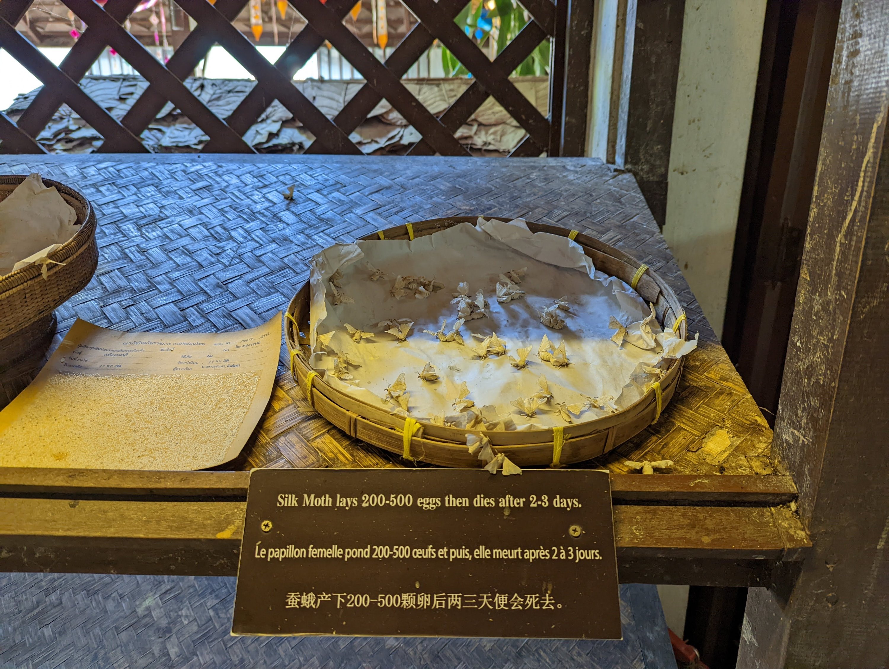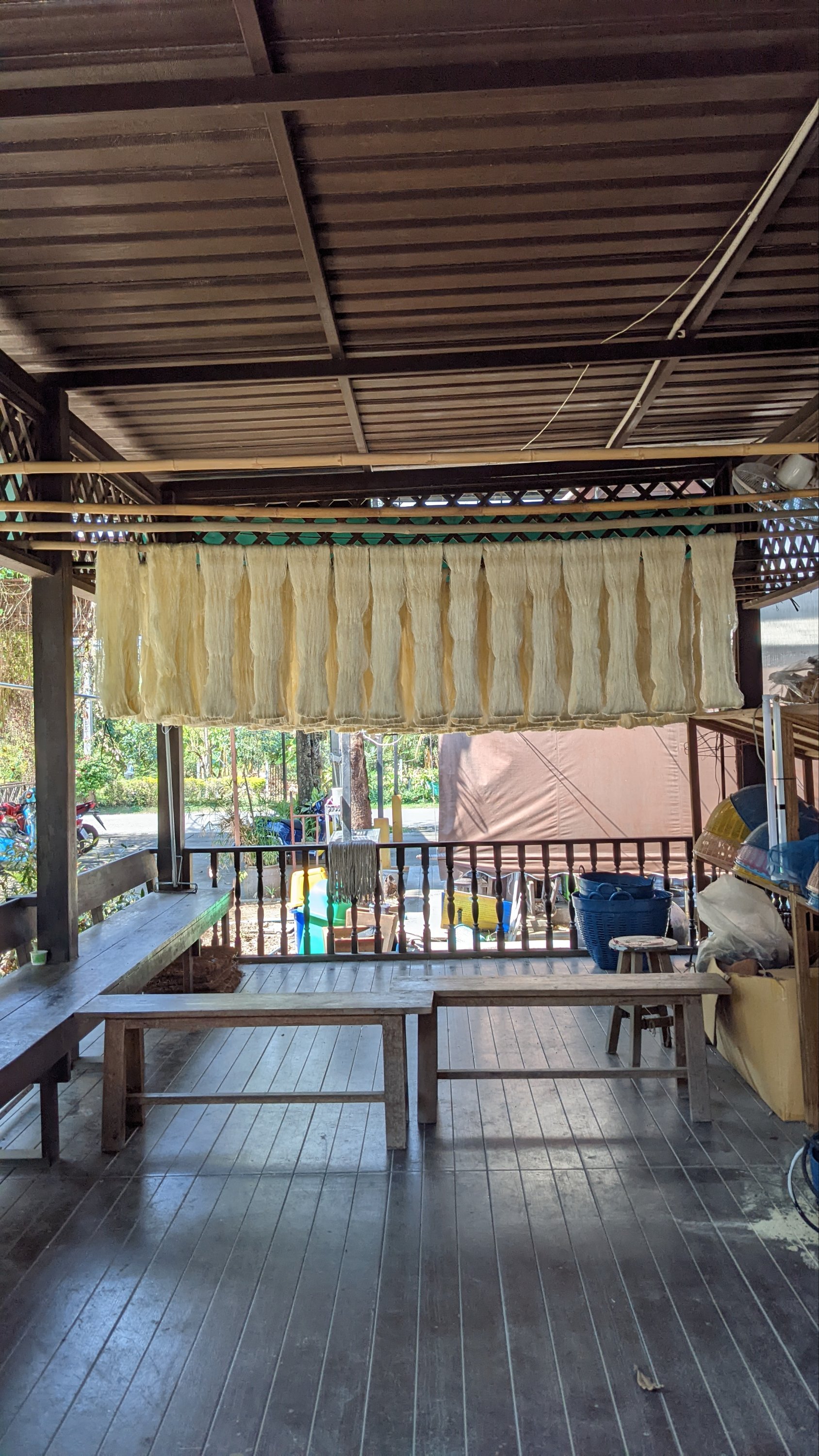 Die Pause haben wir dafür genutzt, um uns eine Seidenfabrik anzusehen. Die Thai Silk Village in Chiang Mai bietet einen Einblick in die Produktion von Seide. Wir haben die Raupen gesehen, die Blätter fressen und sich dann verpuppen. Die Kokons, in denen sich die Raupen verpuppen werden für die Seide verwendet. Aus den Kokons werden Fäden gesponnen, welche dann gewaschen werden. Dann ist der Seidenfaden schon fertig und es kann gewebt werden. In der Fabrik haben wir beim Waschen und Weben zusehen können. Im Anschluss gab es noch ein riesengroßes Geschäft, indem man Seidenprodukte kaufen konnte. Als Erinnerung an Thailand habe ich mir ein Haarband gekauft.
