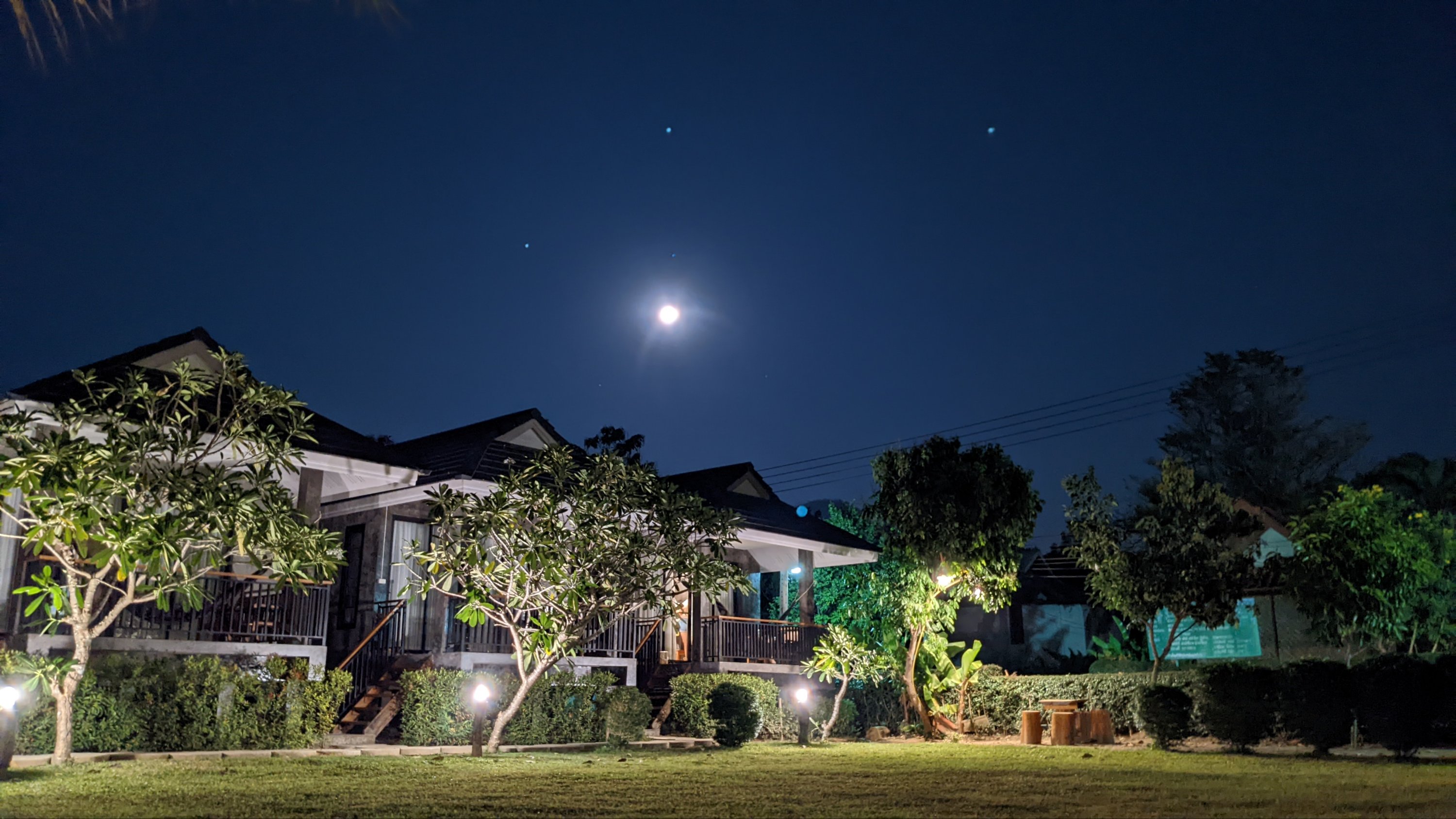 Beim Schlafengehen wurden wir von einem weiteren Naturschauspiel beeindruckt. Der Vollmond hat sehr hell gestrahlt. Es war ein wunderschöner Anblick von unserem Bungalow aus auf den Garten, die Palmen, den Sternenhimmel und den Mond blicken zu können.