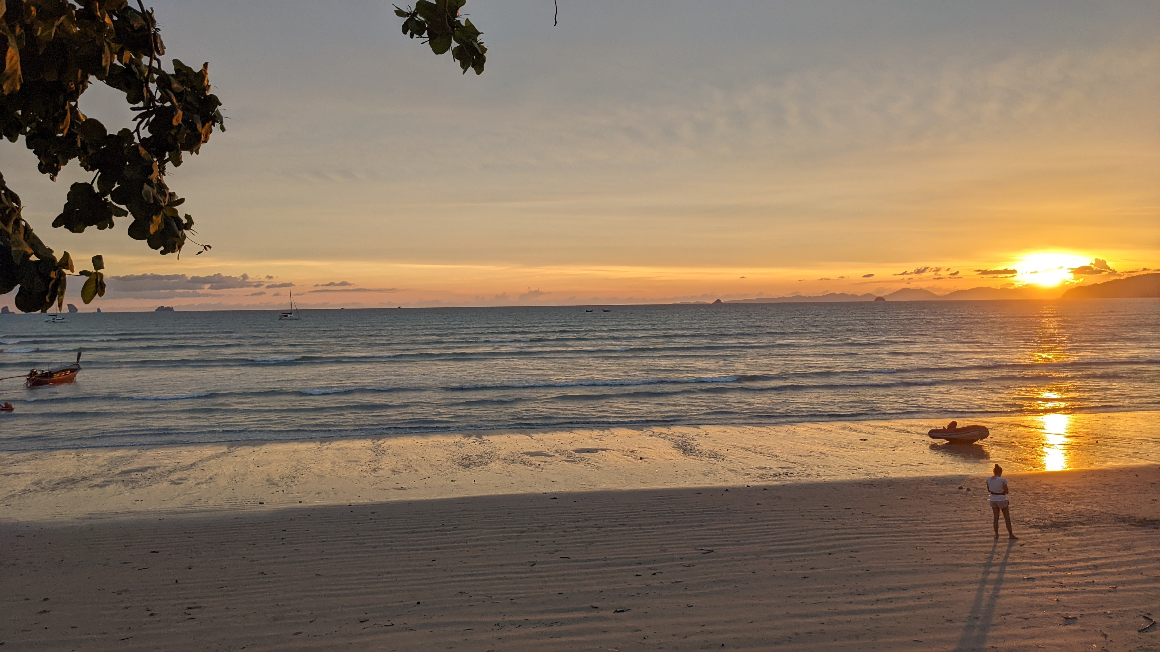 Den Sonnenuntergang haben wir dann wieder am Ao Nang Beach genossen. Es war wunderschön. Die Stimmung war sehr einzigartig und das Licht äußerst beeindruckend – wir haben das wirklich sehr genossen!