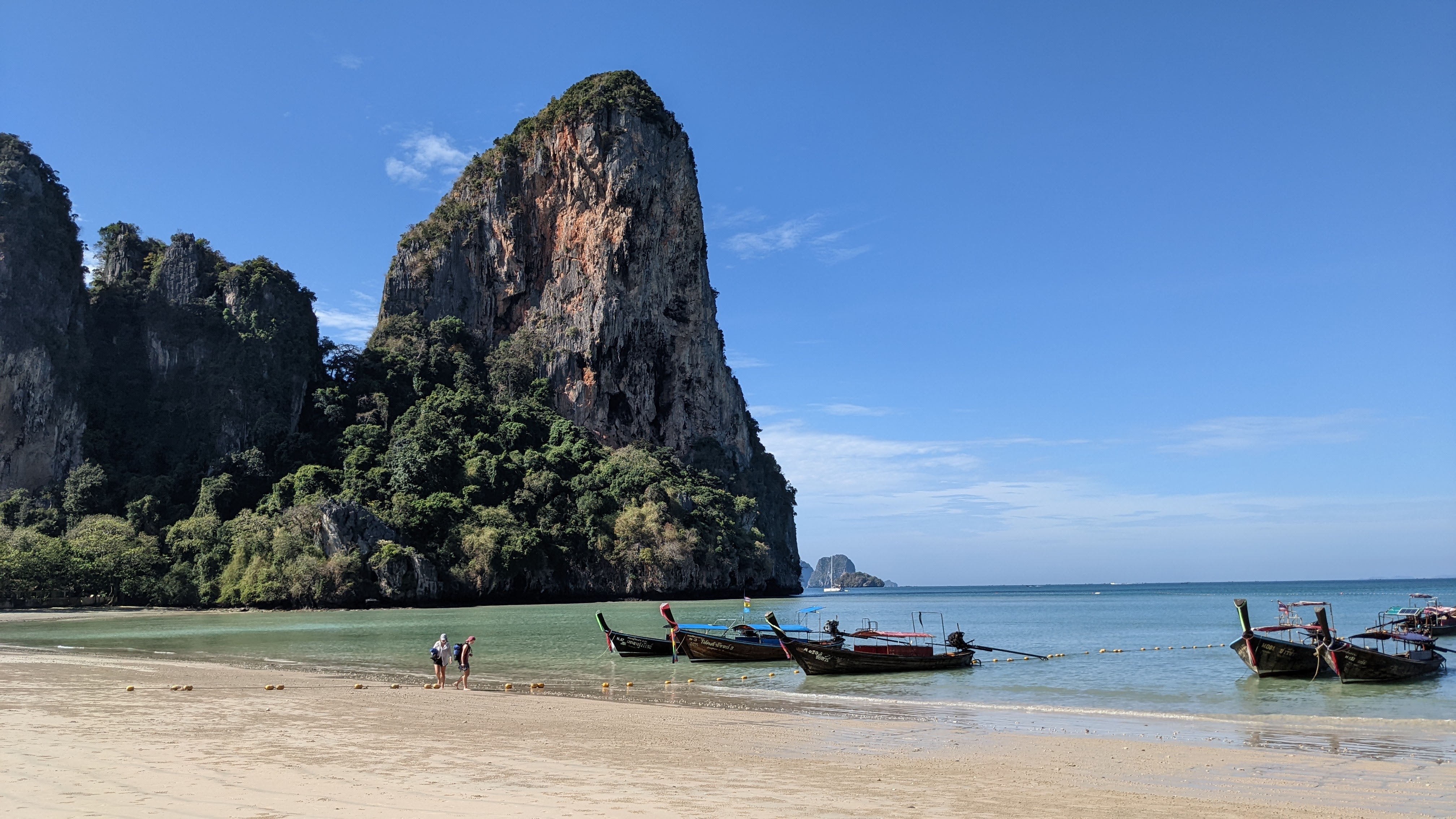 Wir sind in einem schönen Hotel angekommen und gingen dann natürlich gleich zum Strand. Das Meer ist etwas sehr Magisches für uns und es zieht uns immer sehr an. Deshalb gehen wir immer gleich am Ankunftstag an den Strand. Der Ao Nang Beach ist sehr groß und es fahren hier viele Boote in alle möglichen Richtungen und zu allen möglichen Inseln.