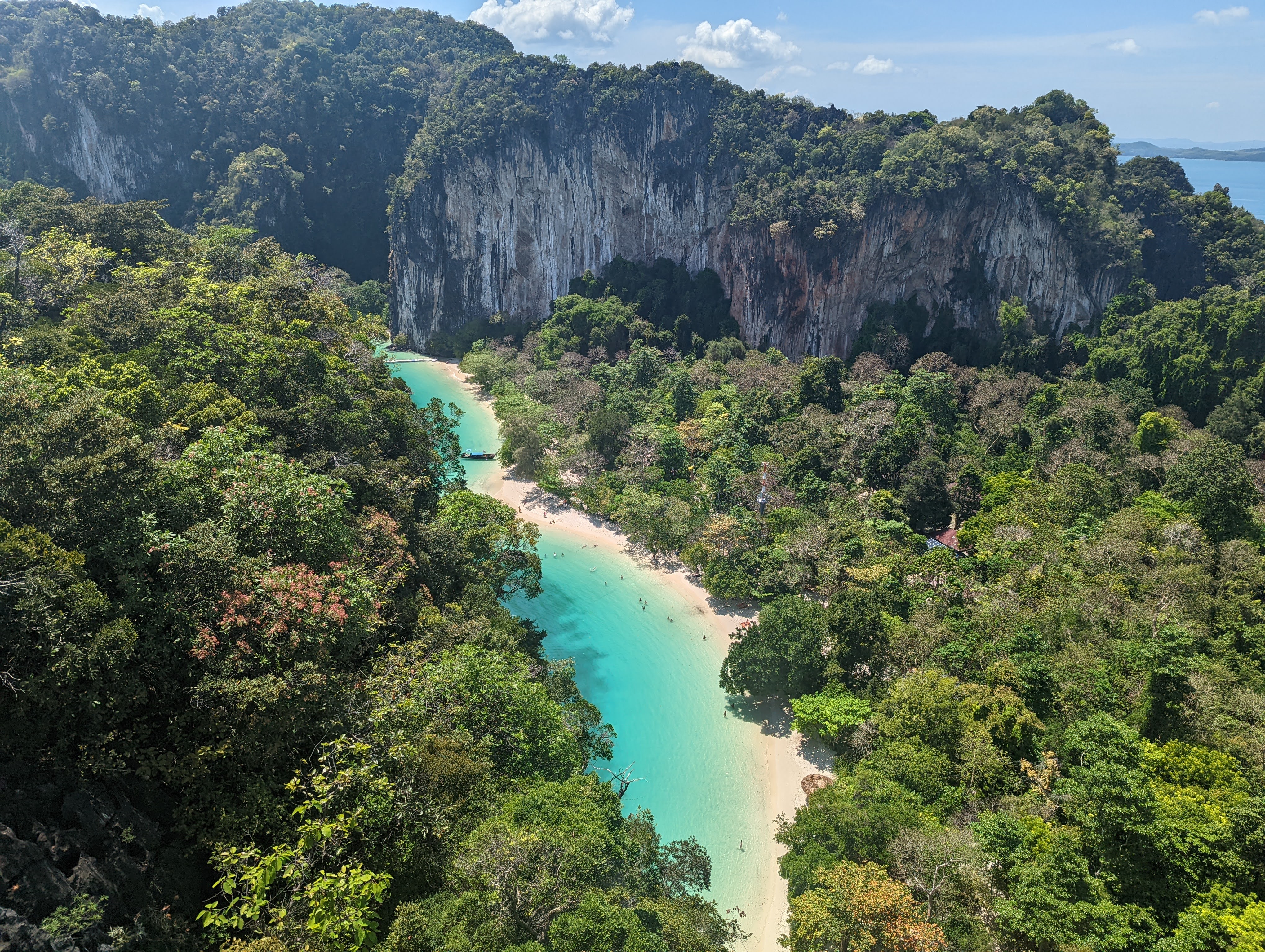 Der letzte Stopp war dann die Hong Island selbst. Zuerst haben wir die Insel über die Lagune bewundert und dann durften wir sie auch betreten. Wir gingen wieder über sehr viele Stufen zu dem Viewpoint der Insel und dieser Ausblick war der absolute Höhepunkt von der ganzen Tour. Auf der einen Seite konnte man die vielen kleinen Nachbarinseln bewundern und auf der anderen Seite sah man das türkise Wasser und den wunderschönen Sandstrand der Hong Island. Der Blick macht einem einfach sprachlos und ich kann hier auch gar nicht mehr schreiben als: „Schaut euch einfach die Bilder an“! Ich bin in dem schönen Wasser auch geschwommen und es war wirklich herrlich.