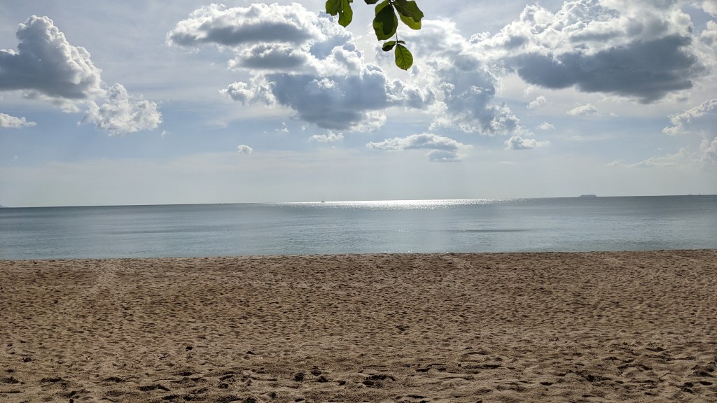 Glücklicherweise sind wir gleich in der Früh losgefahren und gewandert, am Nachmittag hat es sich nämlich wieder verzogen und es hat leicht geregnet. Wir haben den Nachmittag deshalb am Strand verbracht. Wenn es bewölkt ist und leicht regnet kann man sogar über die Mittagszeit am Strand liegen. An einem sonnigen Tag ist das aufgrund der Hitze und Sonnenstrahlung ohne Schattenmöglichkeiten unmöglich. Es hat mir daher besonders gut gefallen, ohne Schattenspender am Strand liegen zu können. Ich bin mitten am Strand gelegen und es war sonst fast niemand da. Ab und zu sind mal andere Touristen vorbeispaziert, aber ansonsten konnten wir bei der Ruhe sehr entspannen. Man hört nur Meeresrauschen und den Wind – das ist einfach unbeschreiblich schön und man kann sich super entspannen und zur Ruhe kommen!
