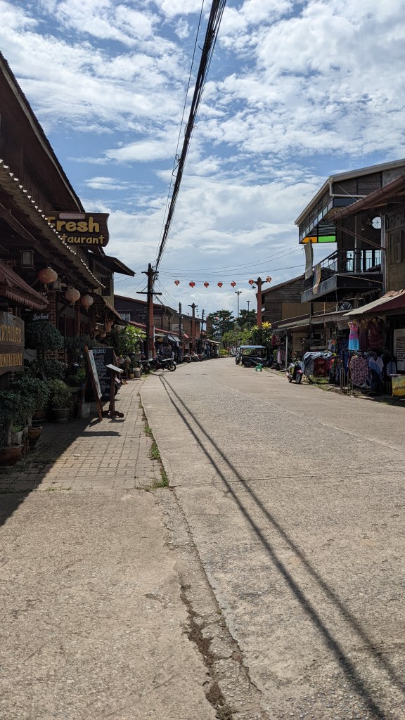 Am ersten ganzen Tag haben wir uns von unserer Unterkunft aus, welche an der Westküste liegt auf den Weg in den Norden gemacht. Über den nördlichsten Punkt sind wir dann an die Ostküste gefahren. Dort besuchten wir die Old Town und fuhren dann die Straßen weiter in den Süden bis wir angestanden sind. Man kann die Insel auf der Straße nicht umrunden, weil in der Mitte der Dschungel mit vielen hohen Felsen ist. Die Old Town an der Ostküste bietet einen kleinen Stadtkern, der viele Shops mit Sommer- und Strandkleidung und Souvenirs von Thailand hat. An der Ostküste gibt es nur wenige Strände, meist sind entlang der Küste hohe Felsen.
