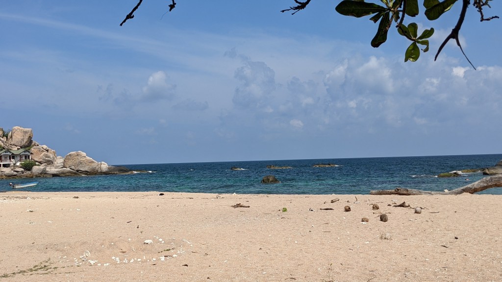 Als wir mit dem Speedboot von Ko Pha-ngan nach Ko Tao gefahren sind, haben wir die Insel schon von der Weite gesehen. Die riesengroßen eher runden Steinen sieht man schon von der Ferne. Die Steine sehen sehr mächtig aus.