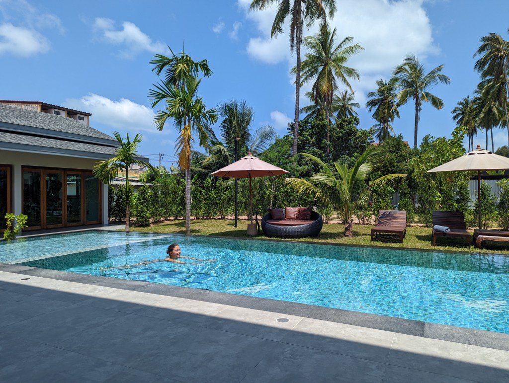 In Ko Samui haben wir rückblickend gesehen Urlaub vom Reisen gemacht. Wir haben die Tage hier wirklich genossen und die meiste Zeit am Pool oder am Strand verbracht. Das Reisen kann auch manchmal ziemlich anstrengend sein – man muss ständig planen wie es weitergeht und was man wo und wie macht. Wenn man das Land wechselt, gibt es immer das meiste zu tun. Das haben wir alles vor Ko Samui erledigt und so konnten wir die Zeit auf Ko Samui wirklich genießen.