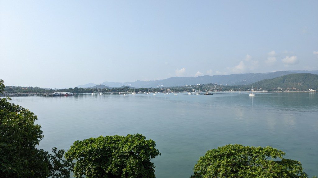 Unser erster Eindruck auf Ko Samui war die Erinnerung an das Festland. Die Tage davor hatten wir auf kleineren Inseln verbracht und auf so kleinen Inseln ist das Leben ganz anders als am Festland. Es gibt keine großen Shops und Einkaufsmöglichkeiten und die Leute sind völlig entspannt und genießen ihr Leben sehr. Hier in Ko Samui ist im Vergleich zu den anderen kleinen Inseln sehr viel los. Es ist viel Verkehr und viele Menschen tummeln sich auf den Straßen, besonders beim Pier. Daran mussten wir uns im ersten Moment mal gewöhnen. Da es Mittag war, gingen wir etwas Essen bevor wir in der Unterkunft eincheckten. Dann holten wir uns ein Moped und fuhren zur Unterkunft.
