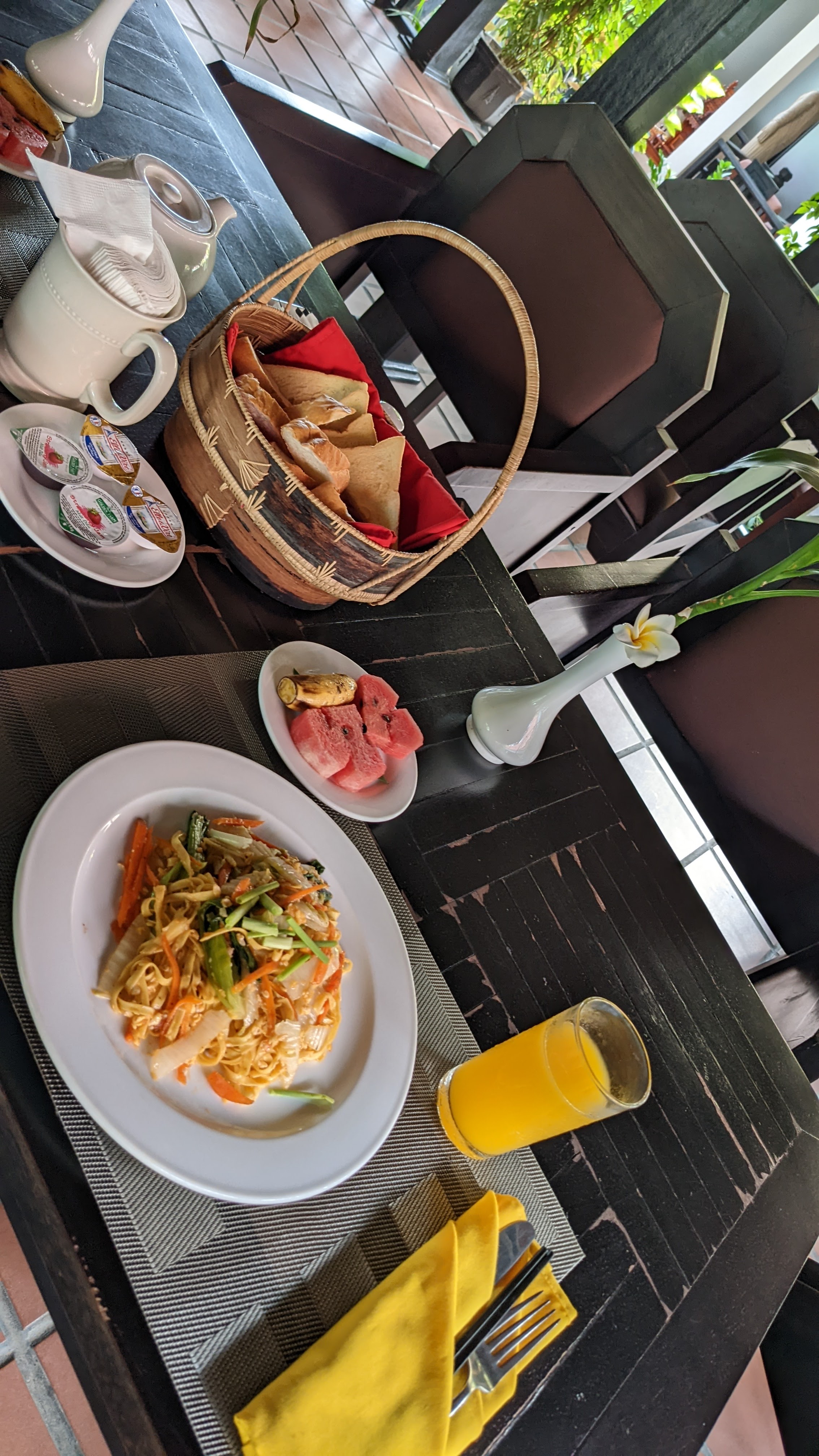Das Frühstück in unserer Unterkunft „The Oasis Harbor“ war sehr ausgiebig und richtig gut. Wir haben uns für das asiatische Frühstück entschieden und bekamen warme Nudeln mit Gemüse, Früchte, Baguette und Toastbrot mit Butter und Marmelade sowie Tee und Orangensaft. Mit dieser Portion sind wir immer richtig gut in den Tag gestartet.