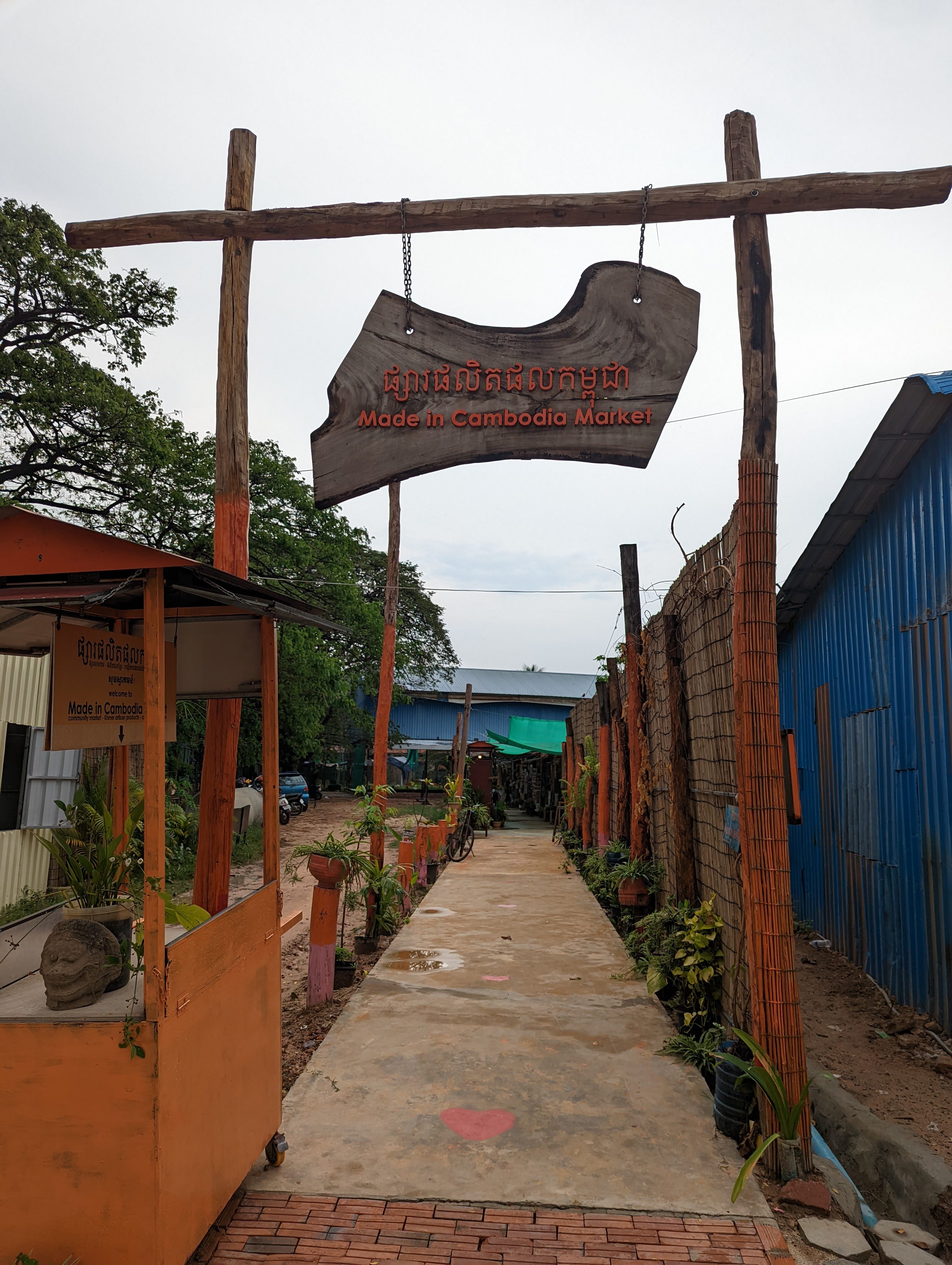 An unserem ersten ganzen Tag in Kambodscha schlenderten wir zu Fuß durch die Stadt Siem Reap. So bekamen wir einen tollen Einblick wie die Menschen hier leben. Es ist so spannend diese Augenblicke aufzusaugen und zu sehen was hier täglich vor sich geht. Ganz zufällig haben wir einen ganz kleinen netten „Made in Cambodia“-Markt gefunden. Da konnten wir nicht vorbeigehen – dieser kleine aber feine Markt bietet Produkte, die hier in Kambodscha hergestellt werden. Es gibt sehr viel Schmuck, Kleidung und Haushaltsutensilien wie Kochlöffel oder Essstäbchen aus heimischen Holz. Wenn wir nicht nur mit dem Rucksack reisen würden, hätte ich hier für zu Hause sicher einiges gekauft. Man unterstützt hier viele arme Familien und bekommt dafür sehr hochwertige und schöne Produkte.