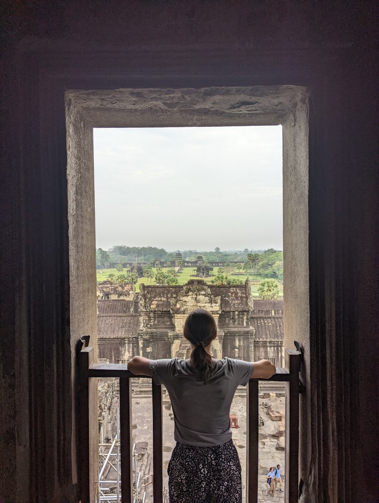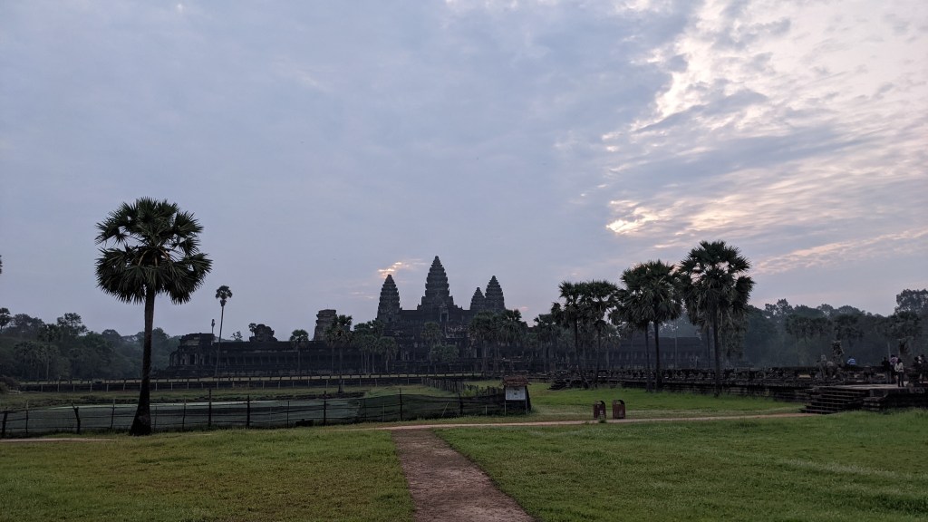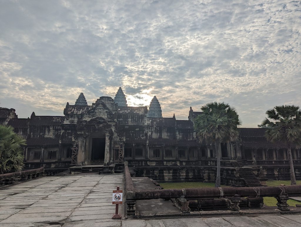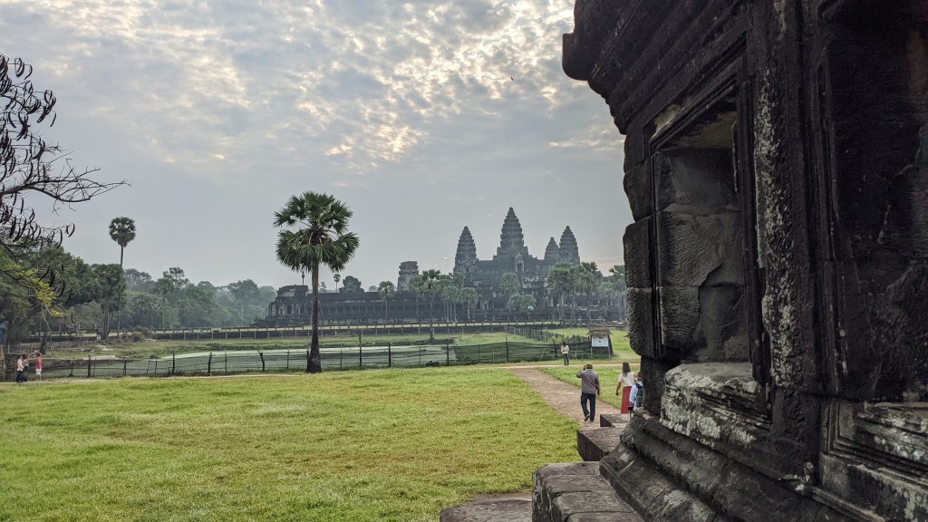 Natürlich haben wir uns den Sonnenaufgang angesehen, doch leider war es etwas bewölkt und wir sahen die Sonne nicht so gut. Die Stimmung war jedoch trotzdem sehr einzigartig und wunderschön. Mit unserem geliehen Moped haben wir uns auch einige andere Tempel der Anlage angesehen. Alle bestehen aus diesen großen Steinen und haben unterschiedlichste Formen und Gravuren. Aufgrund des Alters sind leider viele Gebäude schon sehr zerfallen. Wir sind froh, dass wir noch so viel sehen konnten, bevor es in den nächsten Jahren noch weiter zerfallen wird.