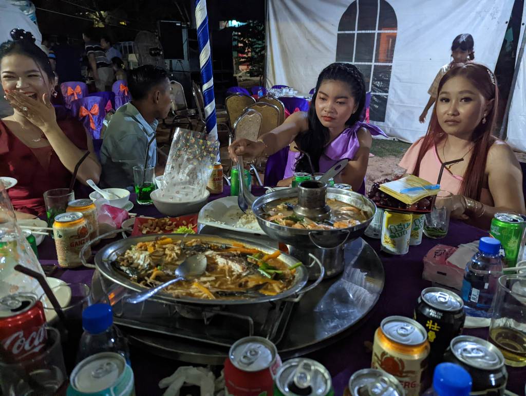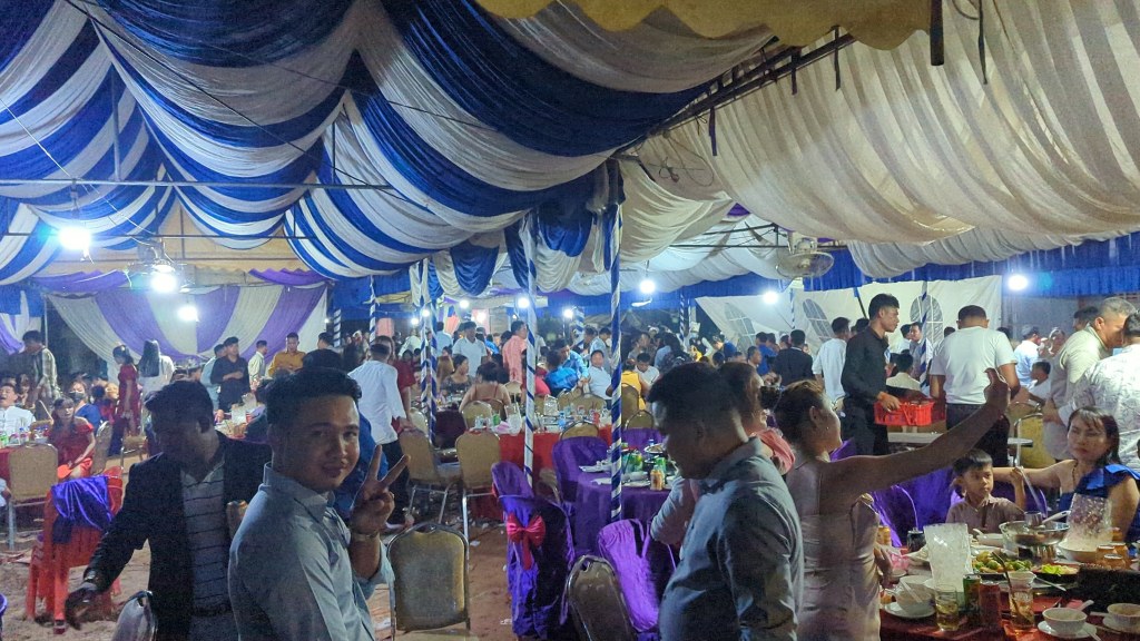 Der Führer, der uns das schwimmende Dorf und den See zeigte, war ein sehr netter junger Kambodschaner. Er hat uns viel über die Menschen und das Leben hier erklärt. Außerdem hat er uns dann noch zu einer Hochzeit eingeladen. Er hat uns erzählt, dass der Sohn seines Vermieters heiratet und an diesem Abend die Party stattfindet. Wenn wir wollen, können wir mitkommen, hat er gemeint. Zu Beginn waren wir etwas unsicher, ob wir tatsächlich einfach erscheinen sollen, doch er hat uns dann gesagt, dass sich das Brautpaar sehr freuen würde. Wenn Touristen auf der Hochzeit sind, dann bedeutet dies dem Brautpaar sehr viel. Wir haben deshalb auch zugesagt und sind dann wirklich gemeinsam mit dem Führer und seiner Frau zu dieser Hochzeit gegangen.