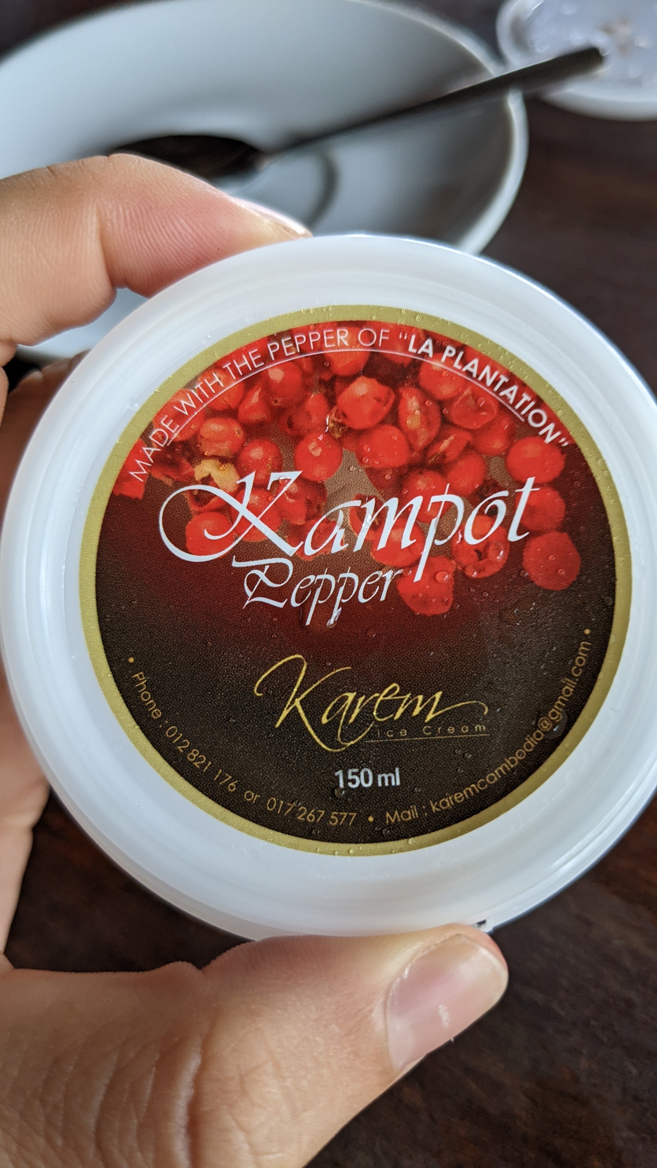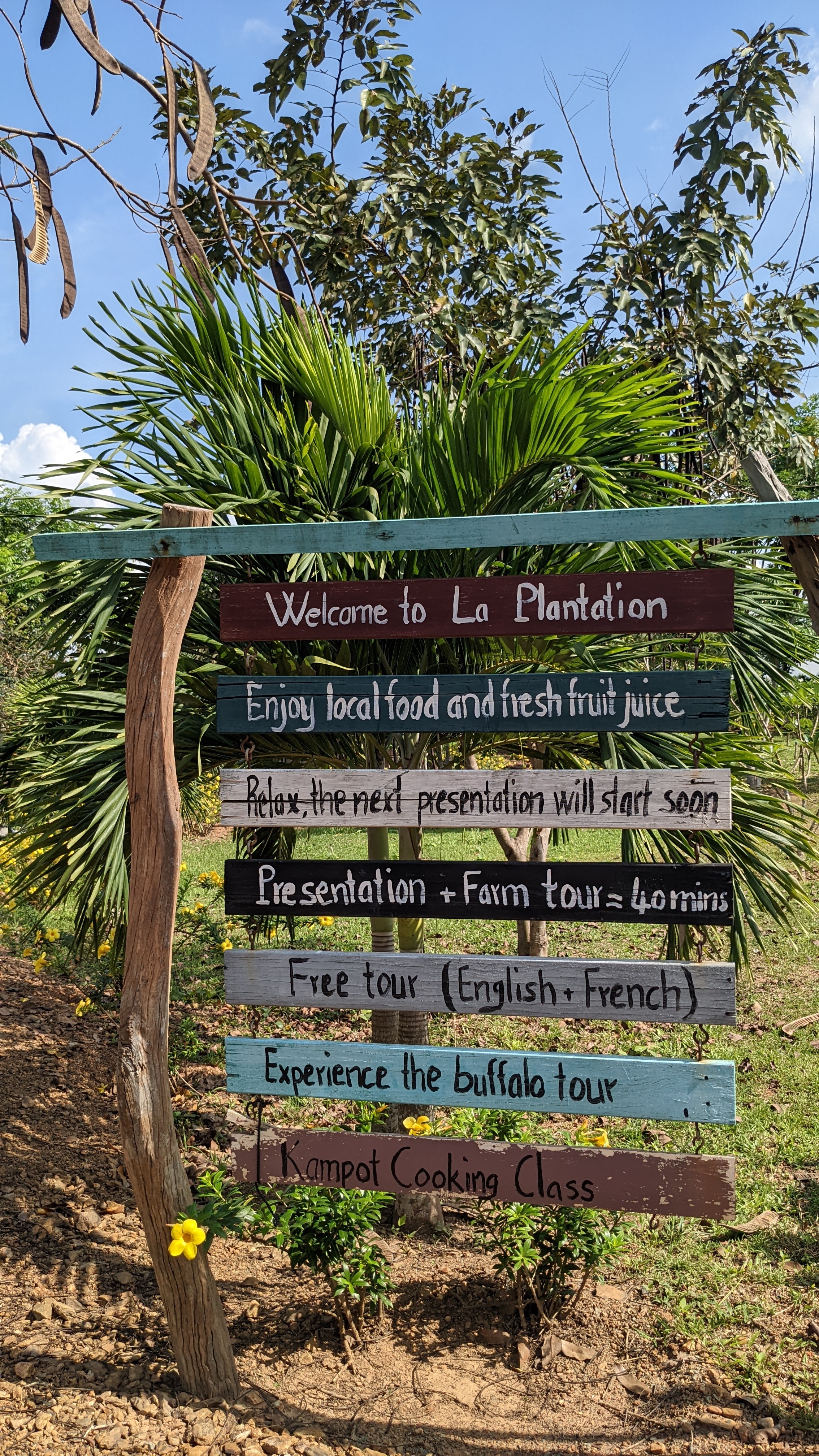 Das Beste an unserem Besuch hier in Kampot war definitiv die Pfeffer-Farm. Ich habe nun endlich selbst gesehen wie der Pfeffer wächst. Ich weiß jetzt was die einzelnen Produktionsschritte sind. Ich habe alle Pfefferarten und die verschiedenen Mischungen verkosten dürfen. Die Firma „La Plantation“ ist ein familiengeführtes Unternehmen, die Besitzerfamilie stammt aus Frankreich und Belgien. Seit 2013 besteht die Farm und bietet aktuell ca. 150 Kambodschanern eine Arbeitsstätte mit fairem Lohn. Die Mitarbeiter wohnen auf der Farm und das Essen wird in der Kantine zur Verfügung gestellt. Außerdem unterstützt das Unternehmen eine ländliche Schule, die erbaut wurde und nun instandgehalten wird. Es wird auch Schulmaterial zur Verfügung gestellt. Es wird hier alles noch per Hand gemacht – sowohl beim Pflanzen als auch Ernten werden keine Maschinen verwendet. Deshalb arbeiten in der Erntezeit hier mehr als die 150 Personen im Stammpersonal. Die Produkte hier werden ausschließlich in Bio-Qualität produziert, es werden keine chemischen Düngungsmittel oder Pestizide verwendet. Noch während dem Besuch habe ich mich dazu entschieden, dass ich ab jetzt nur noch diesen Kampot-Pfeffer kaufen und verwenden werde – ich weiß ja nun woher dieser tatsächlich kommt und wo er gewachsen ist, bevor er bei uns am Teller landet.