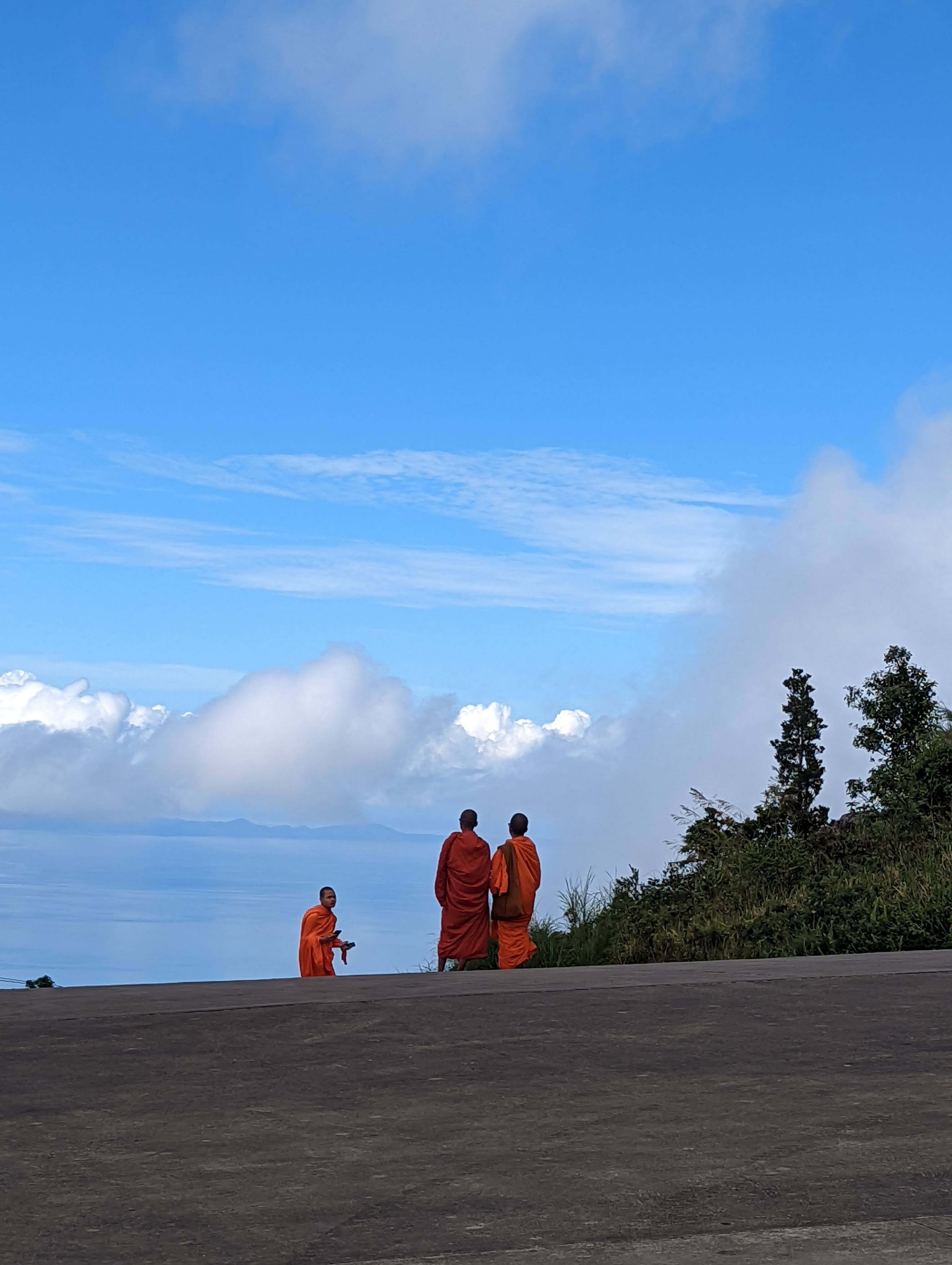 Wir waren auch im Bokor-Nationalpark. Zuerst blieben wir beim Lok Yeay Mao Monument stehen – dort hat man einen tollen Ausblick. Dieser Nationalpark hat eine interessante Geschichte. In der Kolonialzeit haben die Franzosen auf diesen Berg nämlich einiges erbaut, unter anderem eine katholische Kirche und ein großes Hotel. Die Kirche haben wir uns näher angesehen. Es ist sehr interessant, eine über 100 Jahre alte Kirche zu betreten – sie ist noch sehr gut erhalten. Hinter der Kirche hatten wir einen tollen Ausblick auf das Meer und den Urwald – begleitet von vielen Naturgeräuschen haben wir hier viele bunte Schmetterlinge sehen können und den Ort einfach genossen. Hier konnten wir außerdem sehen wie die Wolken entstehen – das passiert direkt über dem Meer. Die Wolken sind dann zu uns gezogen und wir haben uns mitten in den Wolken befunden. Es war dann ziemlich kühl und die Luft war sehr feucht – es war sehr spannend und toll dieses Naturphänomen erleben zu dürfen.