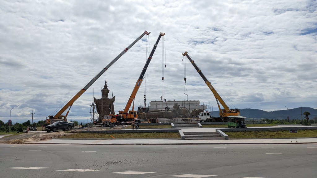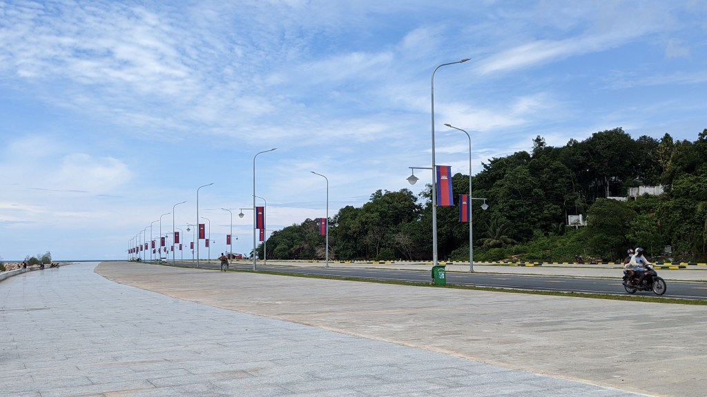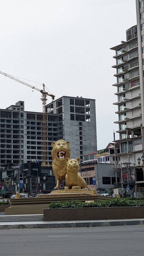 Das Stadtbild von Sihanoukville ist sehr interessant. Es handelt sich nämlich um eine Küstenstadt und so gibt es hier und ganz in der Nähe viele Strände. Die Stadt selbst hat sehr viele Hochhäuser und es wird extrem viel gebaut. Die neuen Hauptstraßen sind fast überall 3-spurig, die Kreisverkehre sind riesengroß und überhaupt ist die Stadt sehr weitläufig – es ist sehr viel Platz zwischen Hochhaus, Radweg, Gehsteig und Straße. Man merkt, dass die Bauten sehr überlegt und durchdacht durchgeführt wurden. Was sehr auffallend ist, ist dass es hier ganz viele Casinos gibt. Viele Chinesen sind in diese Stadt ausgewandert oder machen hier Urlaub und deshalb ist hier auch wirklich alles 3-sprachig angeschrieben: Khmer, Chinesisch und Englisch. Die Einheimischen haben nicht so eine Freude mit den Chinesen. Sie kommen nur um ins Casino zu gehen, hat uns ein junger Mann erzählt. Außerdem hat der alte Bürgermeister von Sihanoukville sehr viel Geld aus China erhalten und deshalb ist die Stadt hier so chinesisch angehaucht. Als ein Gebäude eingestürzt ist und 30 kambodschanische Menschen gestorben sind, wurde der Bürgermeister gewechselt und dieser neue steht nun mehr hinter den einheimischen Kambodschanern.