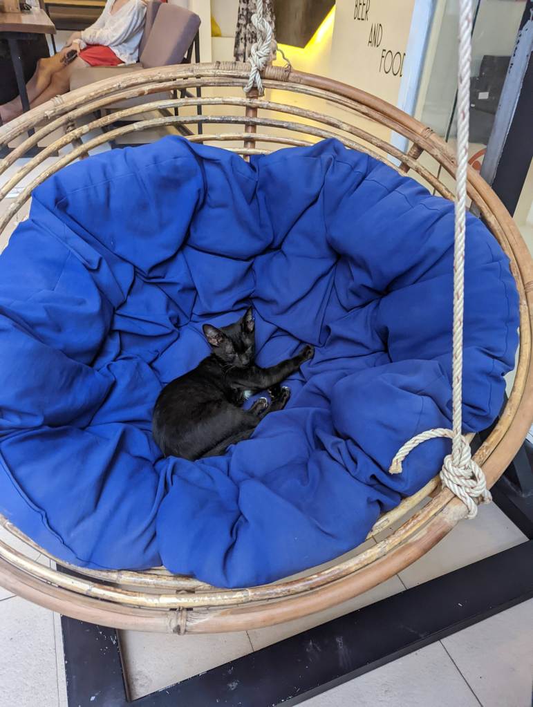 Genächtigt haben wir diesmal zum ersten Mal in einem Hostel. Das Onederz Hostel ist sehr schön, hat einen Pool und einen großen Aufenthaltsbereich. Es gibt Doppelzimmer und Schlafräume mit 6 oder 8 Betten. In der ersten Nacht haben wir uns noch für das Doppelzimmer entschieden. Als Pärchen ist es doch nett, die Zweisamkeit genießen zu können. Für die nächsten Nächte haben wir uns jedoch aus Kostengründen entschieden, einen Schlafsaal zu wählen und so schliefen wir gemeinsam mit 4 anderen Personen in einem Zimmer. Es war schon etwas gewöhnungsbedürftig – die Klimaanlage ist immer gelaufen, obwohl wir die in unseren Zimmern immer ausgeschaltet haben und manchmal hatten wir auch einen schnarchenden Kollegen. In Summe war es für den Preis, den wir zahlten jedoch völlig in Ordnung und es hat für uns beide super gepasst. Was dieses Hostel für uns ganz besonders nett machte, waren die Haustiere. Ein kleiner schwarzer Kater wohnt seit ca. 2 Wochen hier. Er ist ein Findelkind und wollte von der Eingangstür zum Hostel einfach nicht weggehen. Der Eigentümer mag Katzen sehr gerne und so darf er hier gemeinsam mit einem weiteren Findelkind zu Hause sein. Besonders mit dem Kleinen haben wir viel gespielt und wir haben uns sehr gefreut für einige Tage ein Haustier zu haben.