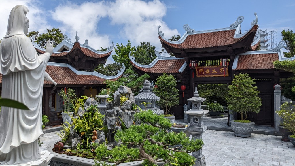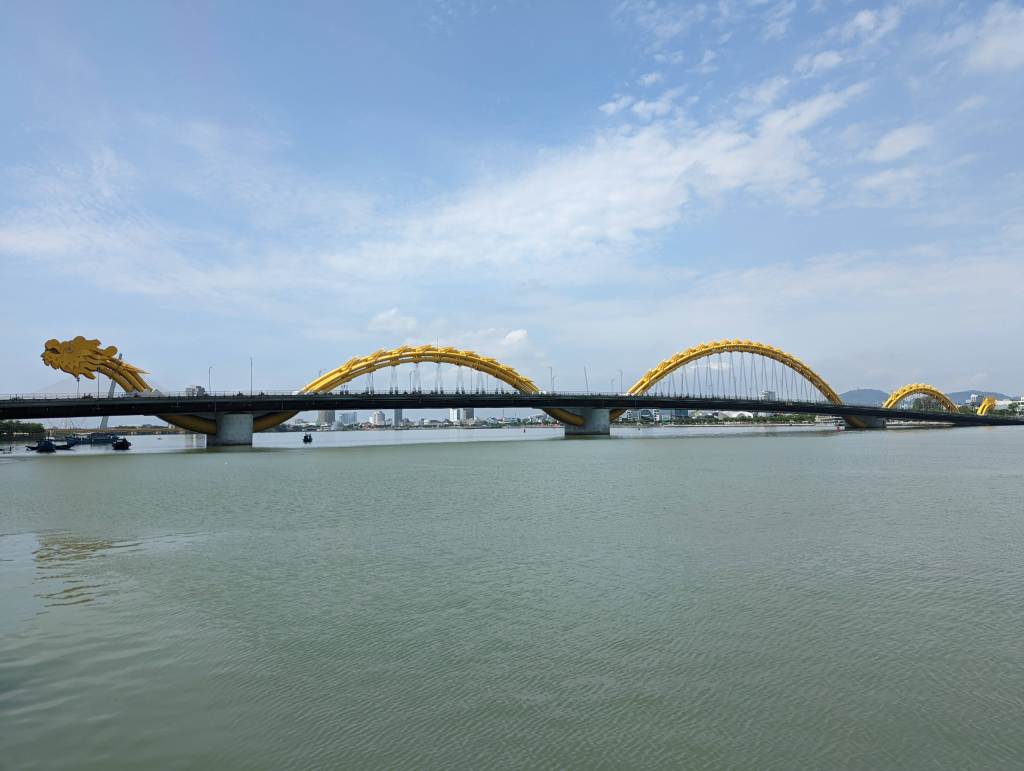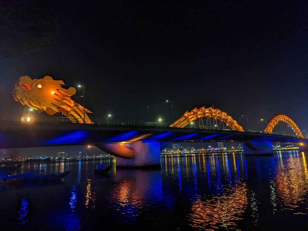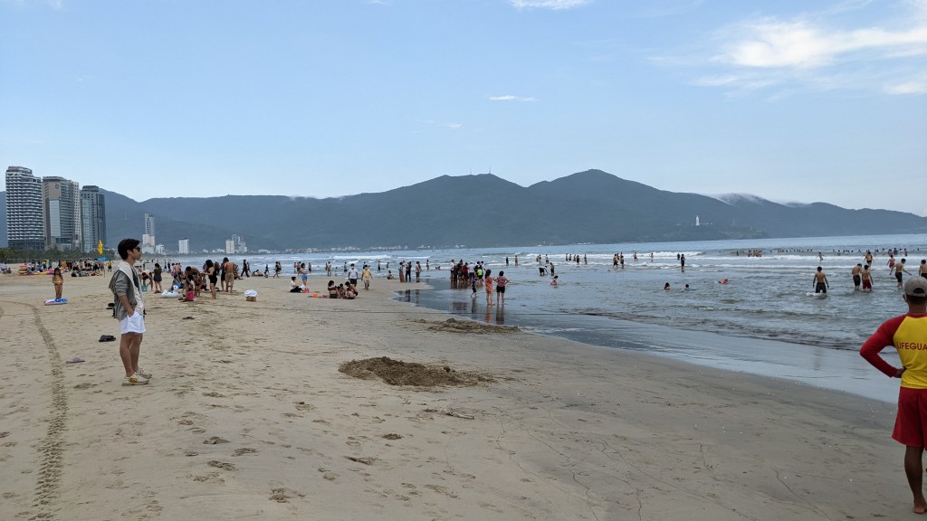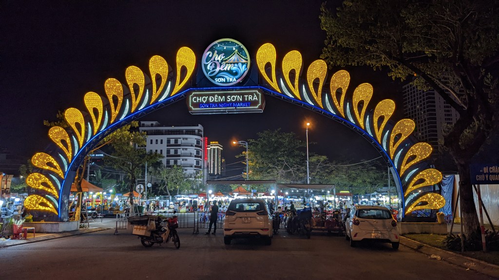Da Nang ist eine sehr junge Stadt. In den letzten Jahren ist die Stadt sehr gewachsen und es gibt viele moderne Hochhäuser. Es gibt sowohl viele hohe Bürogebäude aber auch besonders entlang vom Strand viele sehr hohe Hotels. Wir haben jedoch etwas zentraler gewohnt, so konnten wir zu Fuß die Drachen-Brücke Cau Rong besichtigen. Der Drache ist wirklich riesig und wird in der Nacht sehr schön beleuchtet. Wir sind auch einmal zum Strand spaziert. Als wir dort ankamen, hat sich sehr viel getan. Einen so belebten Strand haben wir bisher auf unserer Reise nicht gesehen. Die Musik war sehr laut und viele viele Vietnamesen waren hier. Im Sand wurden Spiele gespielt und einige waren auch im Meer schwimmen. Wir kamen mit dem Schauen nicht zusammen, weil sich so viel getan hat. Es wurde uns erzählt, dass die Vietnamesen selbst aktuell das Land auch sehr gerne bereisen, da aufgrund von Corona alle sehr lange im Lockdown waren. Am Abend gingen wir zu einen tollen Nachtmarkt in Da Nang – da haben wir uns leckere Köstlichkeiten zum Abendessen gegönnt.