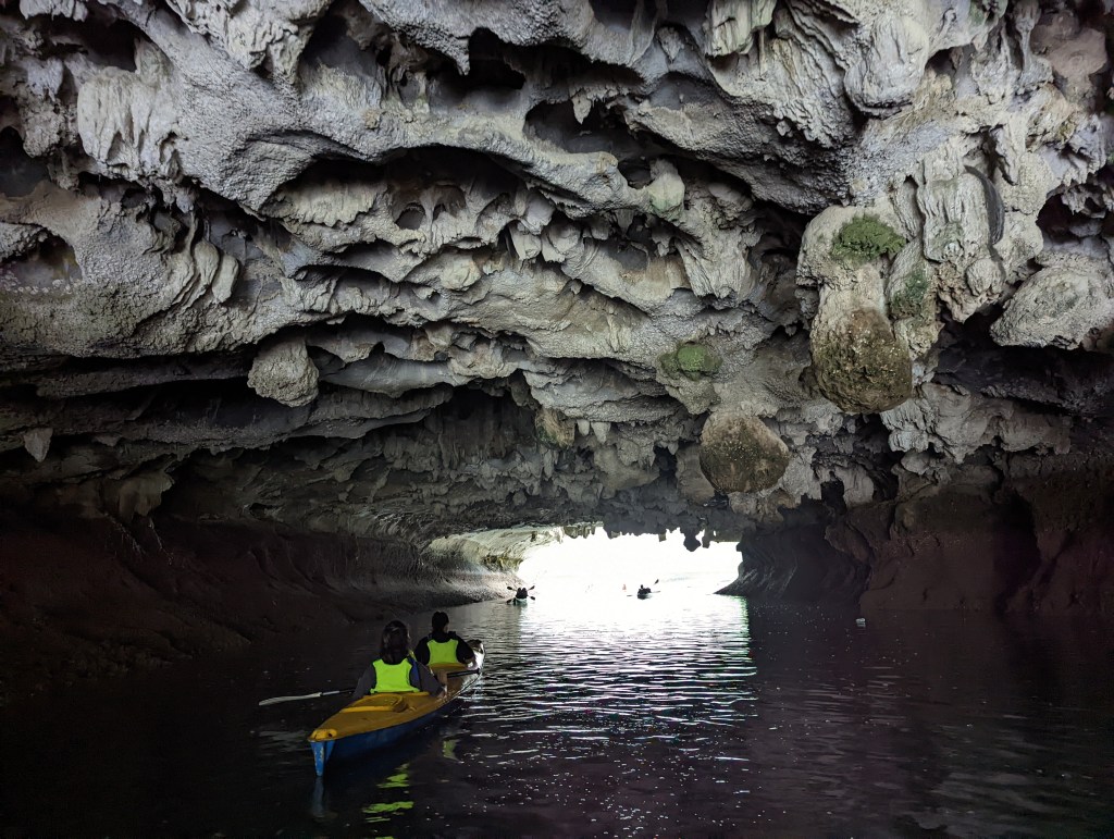 Am Schiff wurde auch einiges an Programm angeboten. So sind wir beispielsweise am Nachmittag noch mit einem Boot durch die Dark an Bright Cave in eine Bucht gefahren. Am nächsten Tag hatten wir die Möglichkeit mit einem Kajak selbst durch die Bucht zu fahren. Es gab auch einen kurzen Ausflug zum Schwimmen im Meer und am Abend nach dem Abendessen konnte man Tintenfische angeln. Am Sonnendeck gab es außerdem eine Vorführung über die Herstellung von Frühlingsrollen und nach dem Abendessen gab es die Möglichkeit Karaoke zu singen.