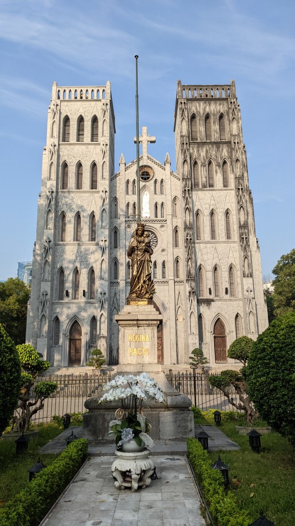 Natürlich haben wir uns auch einige Sehenswürdigkeiten angesehen. Wir waren bei zwei Tempeln und zwei katholischen Kirchen. Außerdem haben wir uns ein Museum in einem ehemaligen Gefängnis angesehen. Da wurden früher während der Kolonialzeit Vietnamesen eingesperrt und während des Vietnamkriegs wurde es für amerikanische Soldaten verwendet. Ein Besuch von solchen Stätten macht mich immer sehr traurig und ich wünsche mir in diesen Momenten ganz besonders, dass endlich überall auf der Welt Frieden herrscht! Natürlich waren wir auch beim Mausoleum von Ho Chi Minh – dieser Mann ist besonders im Norden von Vietnam ein absoluter Held, denn er hat den Süden und Norden des Landes vereint.