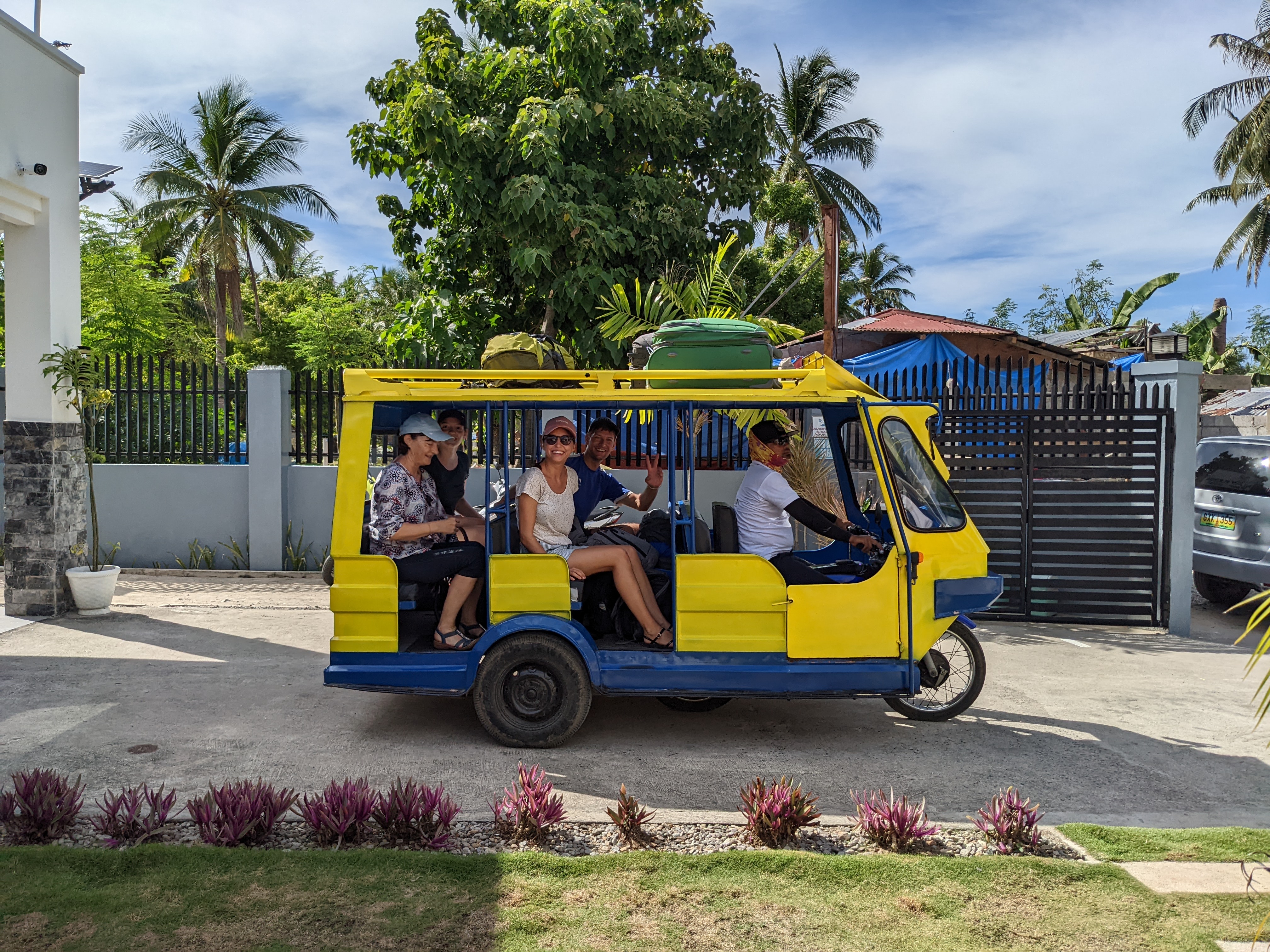 Als wir am Hafen der Bantayan Insel angekommen sind, hat bereits ein Angestellter der Unterkunft mit einem Namensschild auf uns gewartet. Mit einem lustigen Moped-Gefährt wurden wir dann zum Hotel gebracht. Unser Gepäck kam auf das Dach und wir setzten uns in Zweierreihe auf das Geschoss. Nach nur wenigen Minuten sind wir angekommen und in einem kleinen aber wunderschönen Resort gelandet. Unsere Zimmer waren nebeneinander und wir hatten sogar eine Verbindungstür – wir haben also ein Familienzimmer bekommen, ohne es zu wissen und konnten daher innen in das Zimmer von meiner Mama und Schwester gehen. Das war sehr lustig und super!