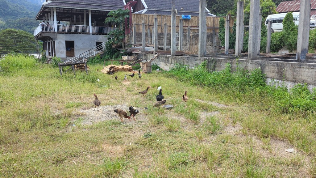 In diesem Ort laufen die Tiere so frei herum wie die Menschen. Enten, Hühner, Schweine, Ziege und Kühe trifft man täglich bei den Spaziergängen. Während der Mittagszeit ist es sehr heiß und die Gassen sind menschenleer. Die Einheimischen liegen in ihren Häusern herum und entspannen. Nong Khiaw ist wirklich ein Ort zum Herunterkommen.