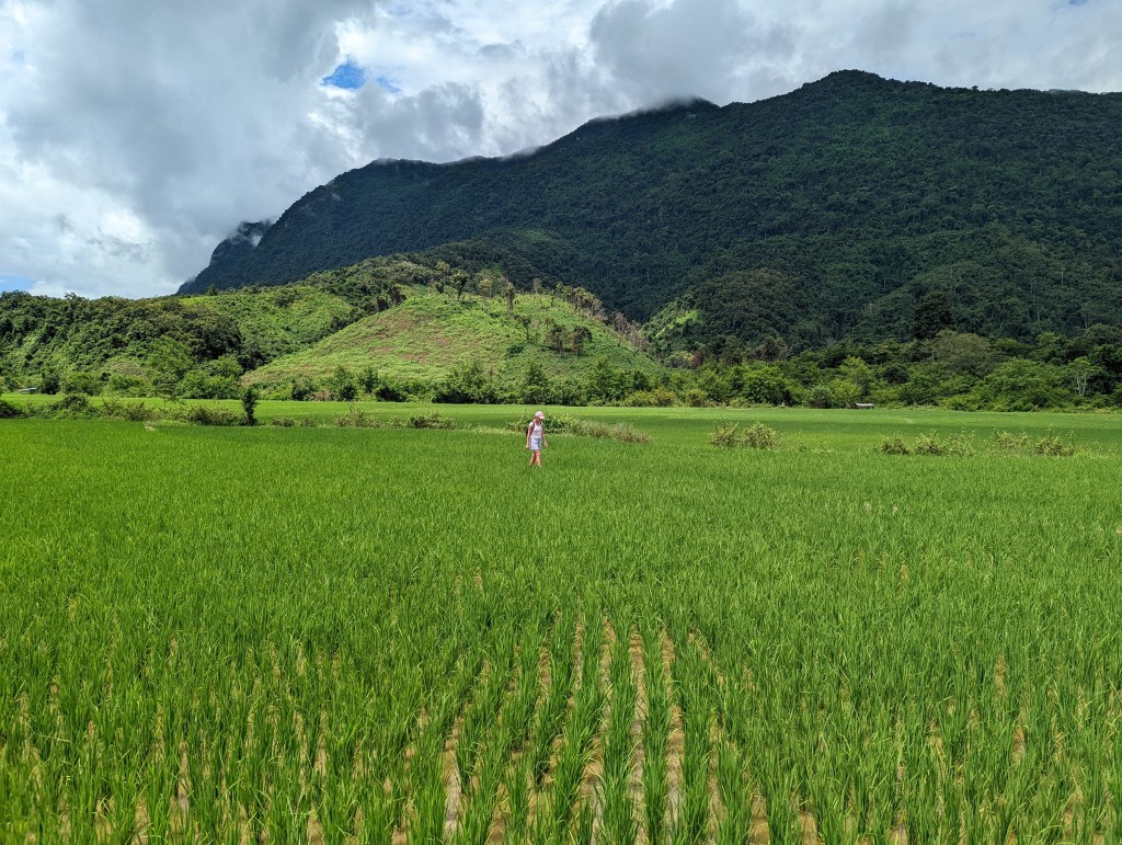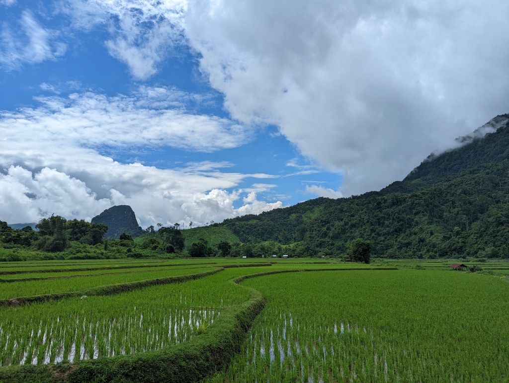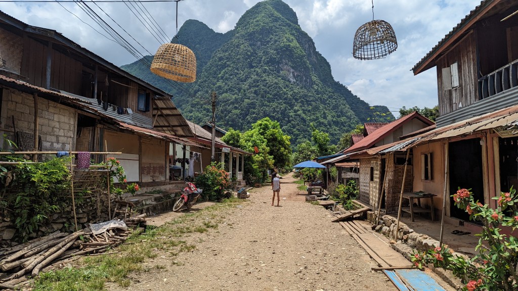 In Muang Ngoy haben wir in erster Linie die Stimmung und Ruhe genossen. Wir gingen aber auch auf einen Viewpoint und haben die Aussicht genossen. An unserem ganzen Tag sind wir zu Fuß in ein noch abgelegeneres Dorf spaziert. Ein wilder Erdweg führte uns an einer Höhle vorbei und das letzte Stück gingen wir durch wunderschöne Reisfelder. Angekommen sind wir dann in einem noch kleineren Dorf, das noch verschlafener war. Ba Na hatte eine ganz besondere Atmosphäre. Einige Familien dort hätten uns gleich zum Essen eingeladen, aber wir sind nur kurz durchspaziert und haben in einer Hängematte Pause gemacht. Ich glaube, dass ich noch nie zuvor in einem so kleinen und abgelegenen Dorf war. Die Menschen hier haben fast nichts und wirklich sehr wenig aber sie sind alle so freundlich und wirken vollends glücklich. Das ist so schön anzusehen.