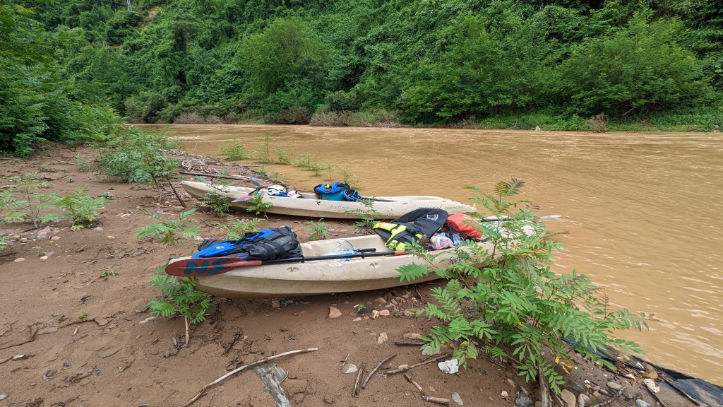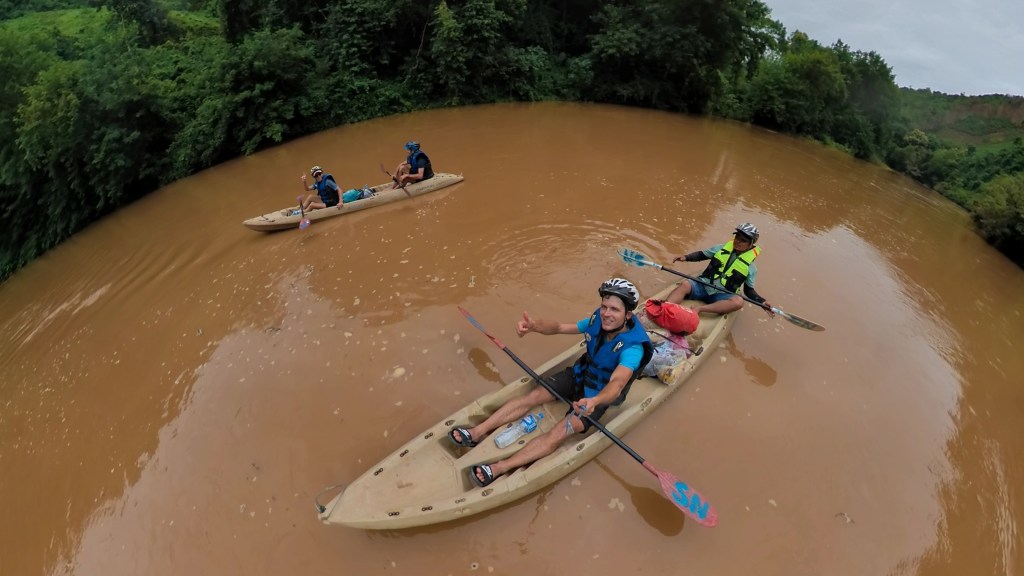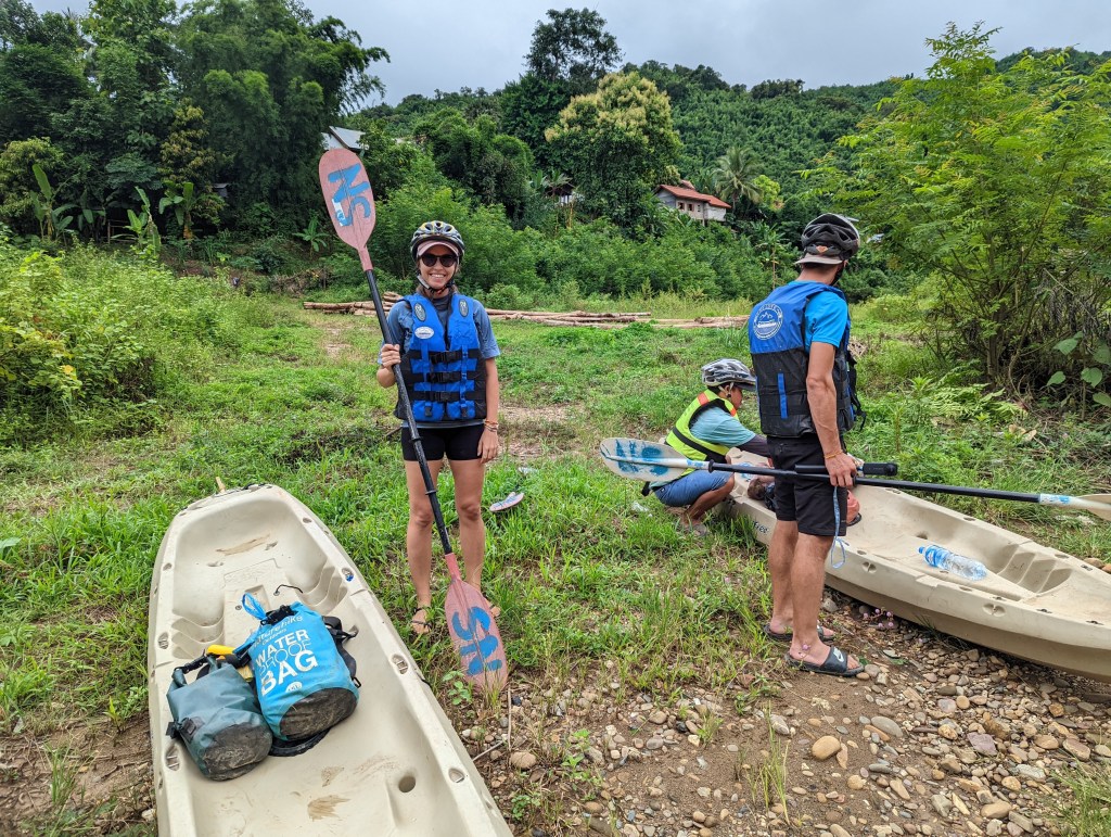 Laos ist ein sehr flussreiches Land und deshalb sind früher viele Touristen mit dem Boot oder Kajak gefahren. In den letzten Jahren wurden jedoch sehr viele Dämme gebaut und es ist nicht mehr so leicht über den Fluss von A nach B zu gelangen. Wir wollten aber trotzdem unbedingt am Fluss reisen und nicht wieder mit dem Mini-Van zurück in die Städte fahren. In der Nähe von Nong Khiaw gibt es einen kleinen Fluss, der bis nach Luang Prabang führt und keinen Damm hat. Das war die Lösung – wir fahren auf einem Kajak zurück in die Stadt.