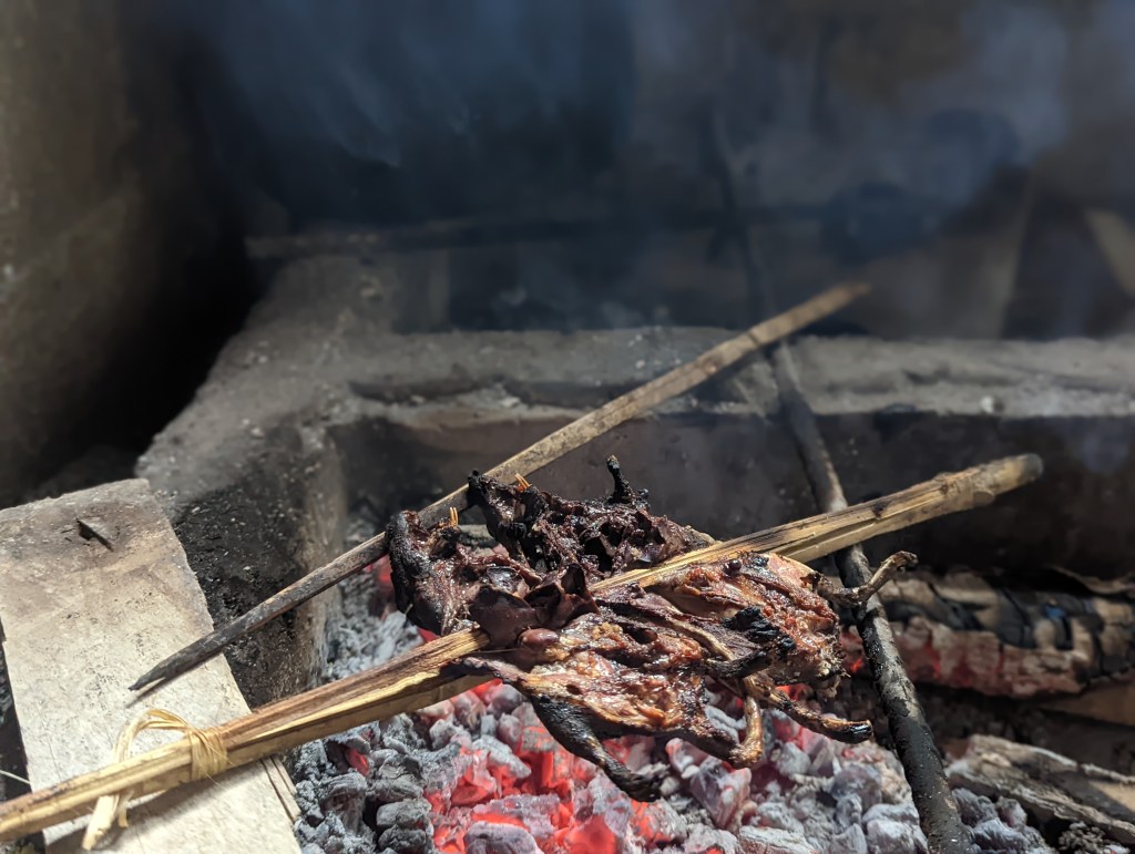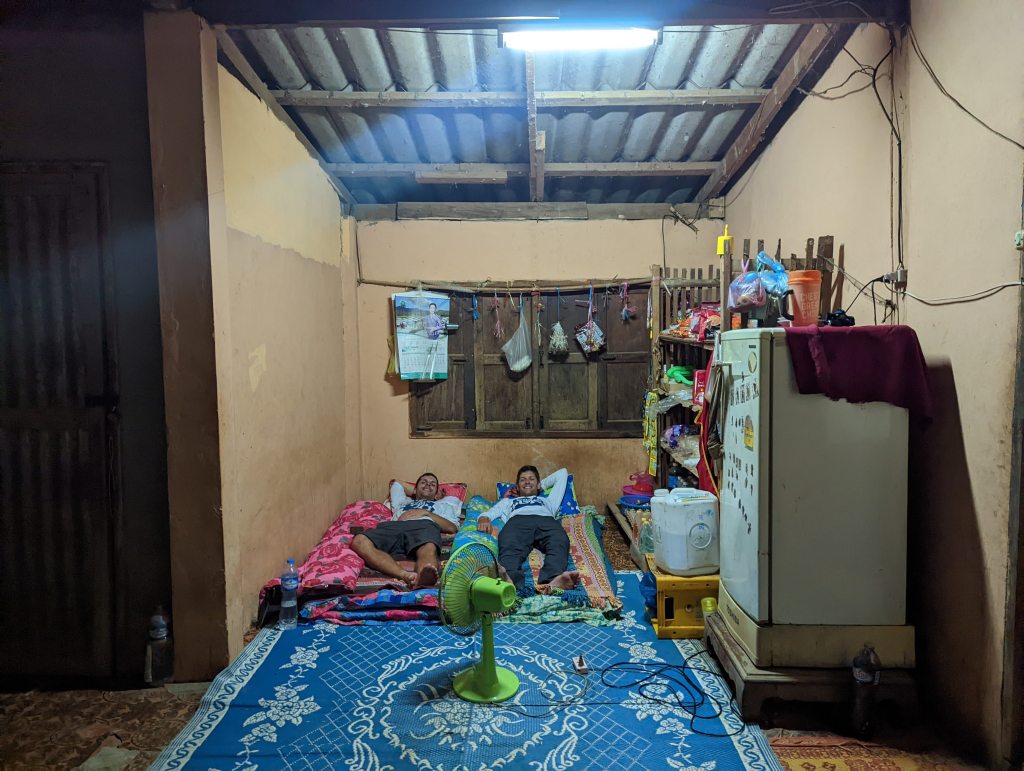 Das zweite Dorf war schon weiter entwickelt als das erste. Wir schliefen diesmal auch in einem gemauerten Haus. Der Glaube der Menschen dort sagt, dass es Unheil bringt wenn ein Besucher-Pärchen in einem Raum schläft. Deshalb mussten wir uns trennen – ich bekam ein Einzelzimmer und René und Mike schliefen gemeinsam im Vorhaus mit und neben einigen Ratten. Im Nachhinein war ich froh ein Einzelzimmer bekommen zu haben. Die Kinder in diesem Dorf waren nicht so lieb, wir blieben deshalb mehr bei der Familie. Das Abendessen war sehr lecker und zum Frühstück bekamen wir eine gegrillte Ratte – das hatten wir noch nie zuvor probiert und schmeckte unerwartet ziemlich lecker. Der Aufenthalt in diesem Dorf war sehr angenehm und entspannt.
