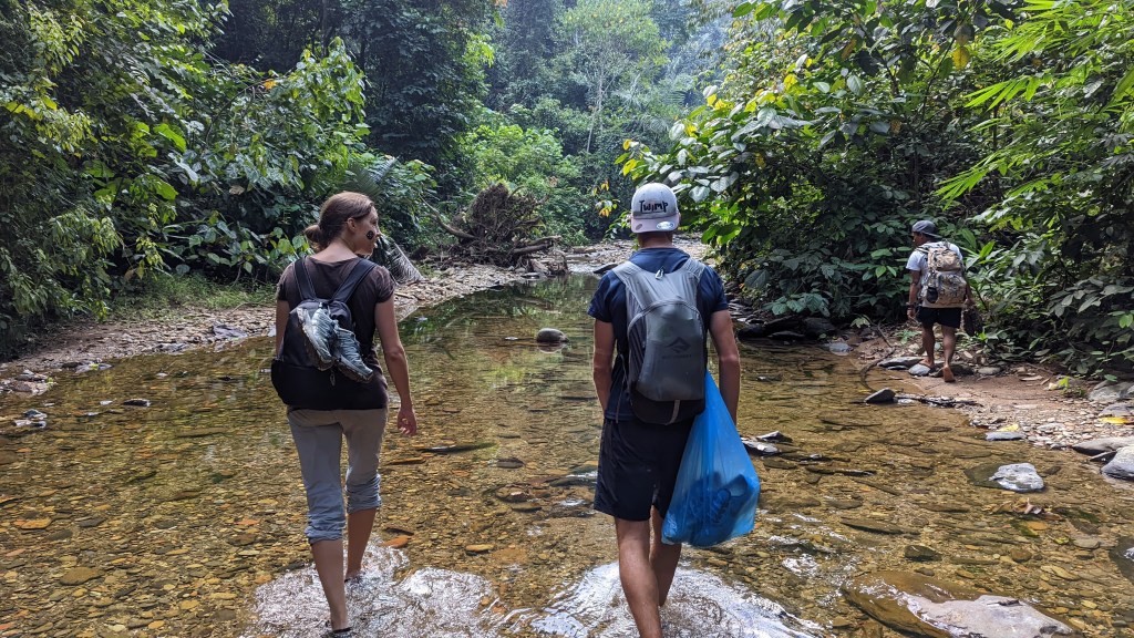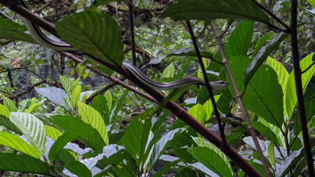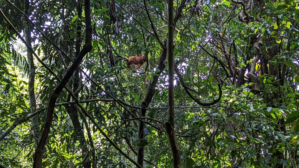 Die Wanderungen durch den Dschungel waren traumhaft. Es ist sehr warm, die Luftfeuchtigkeit beträgt bis zu 90 %, das lässt einem schwitzen. Aber die Bäume und Pflanzen sind sehr beeindruckend. Immer wieder kamen wir auch an einem Fluss vorbei. Die Natur war wunderschön. Wir haben auch noch mehr Tiere gesehen: Wasserschildkröten, Makaken-Affen, Insekten, Vögel, einen Waran und eine Schlange.