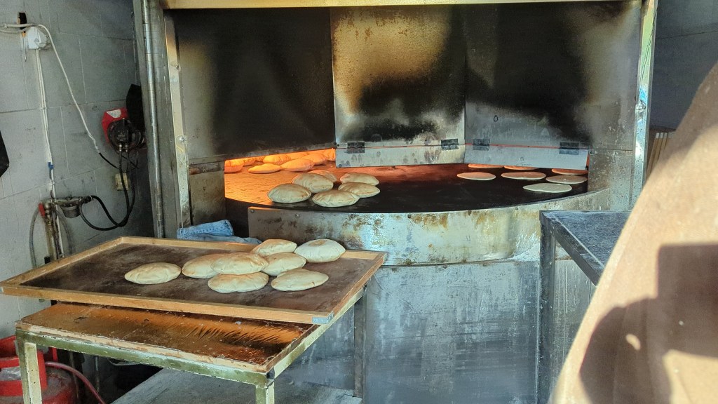 In Aqaba gibt es eine schöne Promenade, an der sind wir entlang spaziert. Wir haben die große Flagge bewundert und nebenbei den Sonnenuntergang genossen. Es gibt auch eine wunderschöne Moschee. Außerdem haben wir ganz in der Nähe von unserer Unterkunft einen Bäcker entdeckt. Überall in Jordanien wird zu jeder Mahlzeit Pita-Brot gegessen und in Aqaba hatten wir die Möglichkeit genau zu sehen, wie dieses Brot hergestellt wird. Das war sehr spannend und natürlich war das ganz frische Brot besser als jedes andere.