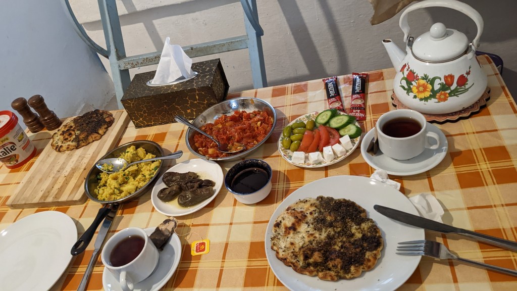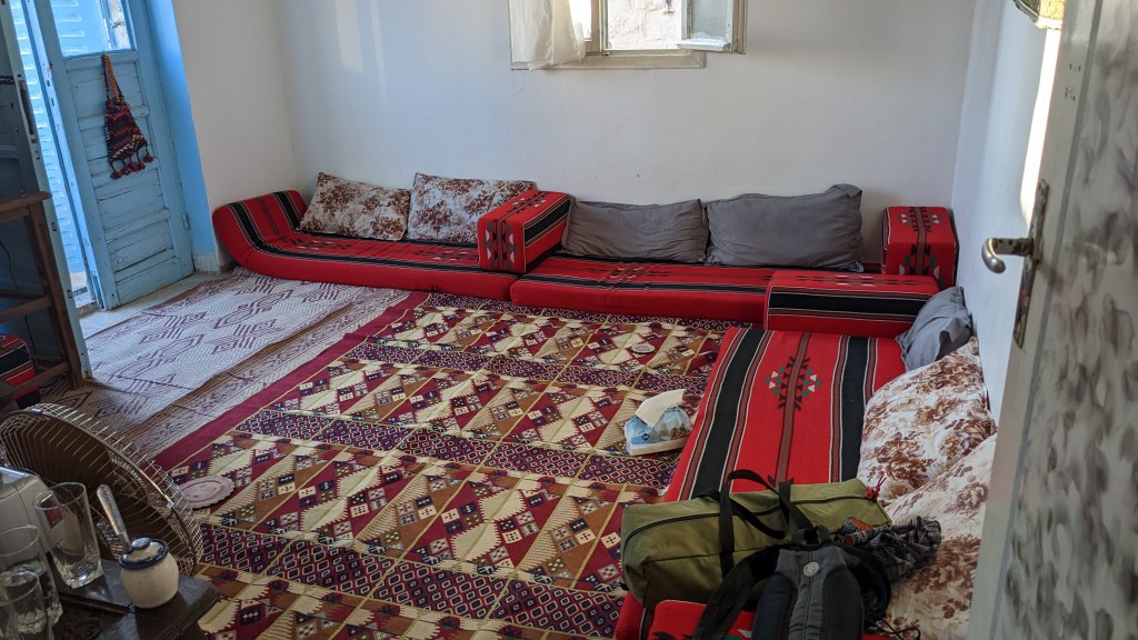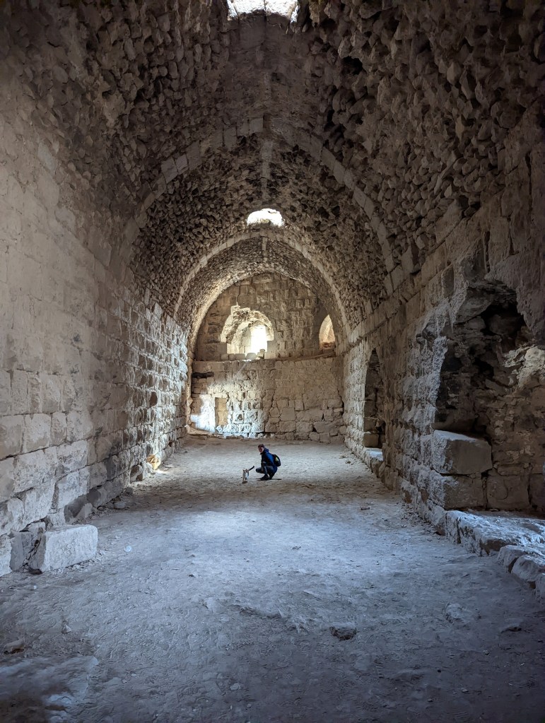 In unserer Unterkunft in Karak hatten wir einen ganz netten Gastgeber. Er fuhr mit uns am Abend zum Sonnenuntergang über dem toten Meer und wir bekamen ein sehr leckeres heimisches Frühstück. Als wir danach die Burg Karak besucht haben, haben wir die Kälte gespürt. Der Wind hat sehr stark geweht und es war wirklich richtig kalt. Die Burg war aber sehr beeindruckend und hat uns gut gefallen. Die Sandsteine machen das Flair sehr interessant und wir konnten uns in manchen Räumen richtig gut vorstellen, wie das früher bewohnt wurde.