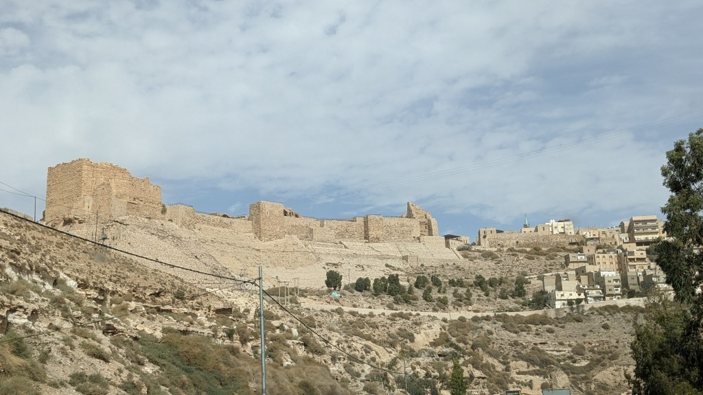 Nach Aqaba fuhren wir nach Karak und dort wurden wir beim Aussteigen richtig überrascht. Es war kalt. Es war sogar so kalt, dass wir die Weste bzw. Jacke ausgepackt haben. Damit haben wir überhaupt nicht gerechnet. Es wurde uns erklärt, dass die Stadt auf fast 1.000 Meter liegt und jetzt im Herbst ist es kalt und im Winter liegt sogar ab und zu mal für ein paar Tage Schnee. Das haben wir erst geglaubt, als wir auch wirklich Fotos gesehen haben.