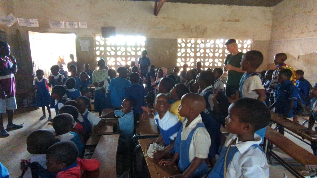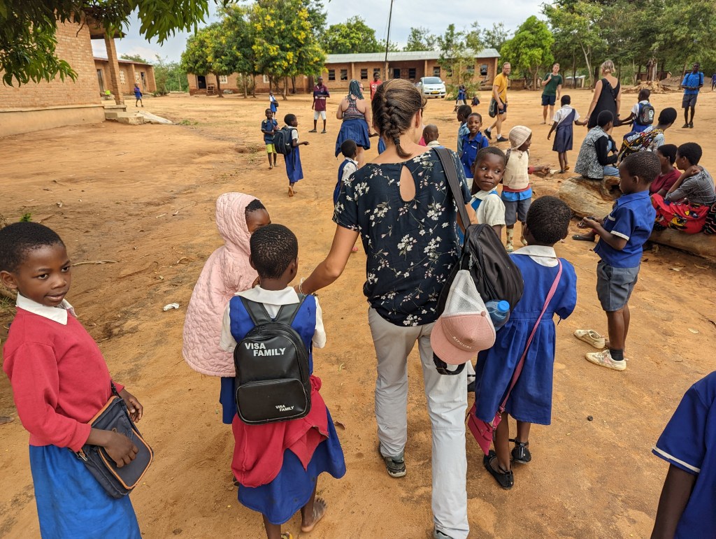 Am beeindruckensten war für mich der Besuch in der Volksschule. Sofort wurden wir von den Kindern empfangen und alle wollten unsere weiße Haut berühren. Es hat nicht lange gedauert und jeder hatte mehrere Kinder an beiden Händen hängen. Die Kinder waren sehr lieb und freundlich. Wir haben dann erfahren, dass die Kinder in der Schule Cassava-Brei bekommen, weil sie meist hungrig in der Schule erscheinen – die Familien haben oft nicht genügend Essen für die ganze Familie. In einer Klasse sind mehr als 100 Kinder, das ist für uns unglaublich. Hier funktioniert das aber sehr gut, denn die Kinder sind ehrgeizig und sie wissen, dass Bildung die einzige Möglichkeit ist, aus der Armut herauszukommen. Das war wirklich sehr beeindruckend und ich würde mir wünschen, dass Bildung bei uns auch so wertgeschätzt wird. Es gibt auch eine Schuluniform und alle Kinder müssen sehr kurz geschnittene Haare haben, damit mögliche Läuse und Flöhe nicht weitergegeben werden. Die Schuluniform soll dazu beitragen, dass nicht sofort ersichtlich ist wie arm die Herkunftsfamilie ist. Schultaschen gibt es nicht – Kinder aus besseren Verhältnissen haben eine kleine Tasche oder einen kleinen Rucksack. Manche Kinder haben aber auch nur ein Plastiksackerl mit 1 Heft und 1 Stift. Mehr Materialien können sich die Familien nicht leisten. All diese Eindrücke stimmen mich noch immer sehr nachdenklich. Ich bin unglaublich froh, dass ich den Besuch in der Schule erleben durfte und ich weiß, dass mich dieses Erlebnis in gewisser Weise verändert hat.