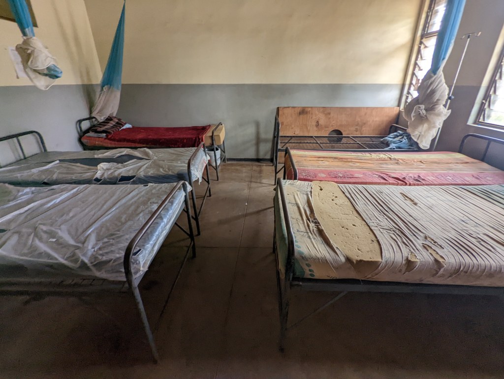 Ein weiteres sehr beeindruckendes Erlebnis war dann der Besuch in dem so genannten Krankenhaus. In diesem Ort wird es Krankenhaus genannt, bei uns würde sich niemand in so einem Krankenhaus behandeln lassen. Es ist hier auch nur ein medizinischer Assistent – Ärzte findet man erst in einem ca. 6 Stunden entfernten größerem Krankenhaus. Die Menschen sind aber sehr froh, dass sie diese Institution haben. Malaria ist nämlich sehr weit verbreitet, wirklich gefährlich und hier bekommen die Patienten Hilfe. Wir haben einen Burschen kennen gelernt, der aufgrund von Malaria nun phsychische Störungen hat, das war sehr traurig. Auch andere Einheimische haben uns erzählt, dass sie schon mehrmals Malaria hatten. Besonders für kleine Kinder und Babys ist die Krankheit lebensbedrohlich. Zum Glück werden von der Regierung teilweise Moskito-Netze verteilt, um vorbeugen zu können. HIV und Aids ist auch ein großes Problem, deshalb werden Kondome ausgeteilt und es gibt gratis Beratung hinsichtlich Familienplanung. Nicht selten werden nämlich Mädchen vergewaltigt und bekommen ganz bald, also schon mit 13 oder 14 Jahren Kinder. Wir durften dann auch den Raum sehen, in dem Kinder geboren werden. Hier stehen zwei Betten mit harten Matratzen – sehr viel mehr Hilfsmittel gibt es nicht. In dem Raum, in dem sich die Frauen von der Geburt erholen können, stehen 6 Betten, jeder muss aber das Bettzeug von zu Hause mitnehmen.