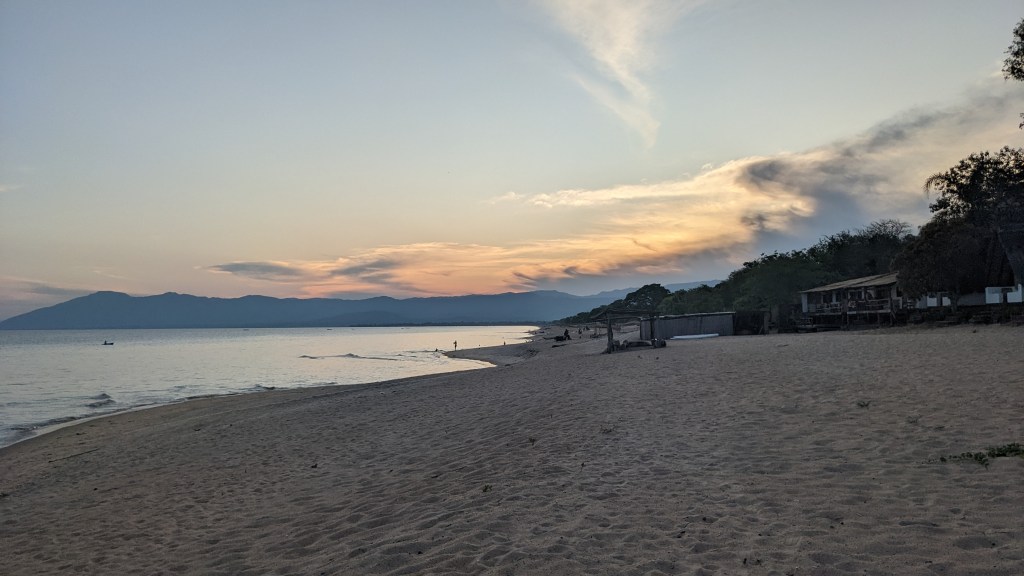 Gleich nach der Grenze haben uns alle Bewohner freundlich zugewinkt und die Kinder und Erwachsenen hatten ein freundliches Lächeln im Gesicht. Wir wurden also sehr positiv und herzlich willkommen geheißen. Der Malawi-See ist der drittgrößte See in ganz Afrika und am Ufer dieses Sees haben wir unsere Nächte verbracht. Das war sehr schön und wirklich angenehm. Da der See so groß ist, hatte man das Gefühl am Meer zu sein.