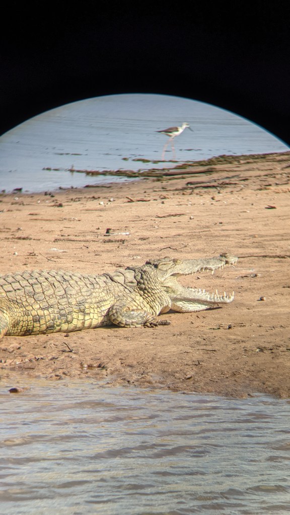 Insgesamt dreimal machten wir auch eine Tour mit einem kleinen Boot. Dabei suchten wir die Tiere und wir konnten aufgrund des kleinen Bootes viel näher kommen. Die erste Runde war am besten – wir haben so viele und auch richtig große Krokodile gesehen. Überall am Ufer konnten wir sie sehen. Auch Nilpferde waren sehr oft zu sehen und wir hatten teilweise auch ein bisschen Angst, dass sie uns nicht angreifen, denn unser kleines Boot würde ein großes und starkes Nilpferd leicht zum Kentern bringen. Glücklicherweise ist aber nichts passiert und wir konnten die unberührte Natur genießen.