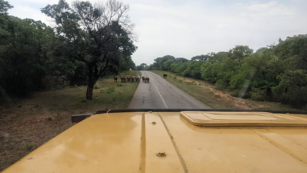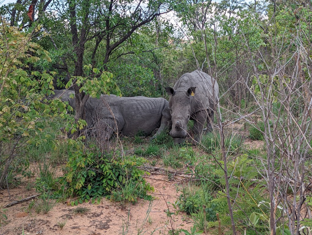 Obwohl uns auch die Geschichte sehr interessiert, haben wir uns gefreut, dass wir wieder mit Tieren in Kontakt kamen. Wir haben wieder komplett wild mitten in der Natur gecampt und wir machten die wohl gefährlichste Safari unserer gesamten Reise. Zu Fuß machten wir uns nämlich auf die Suche nach Nashörnern. Ein Nashorn wiegt ca. 2-3 Tonnen und kann innerhalb von Sekunden bis zu über 40 km/h laufen. Das zu wissen, machte mir schon Sorgen. Als wir den 4 Riesen dann aber auf nur wenige Meter gegenüber standen, war ich sprachlos. Die Tiere sind sehr beeindruckend, bewegen sich nur sehr langsam und ruhig. Es war unglaublich so nahe zu sein. Aber ich hätte mich am Jeep wohler gefühlt. Zweimal haben die Weibchen nämlich ein paar schnelle Schritte auf uns zu gemacht und das war wirklich beängstigend. Ich bin auch der Meinung, dass solche Touren gar nicht angeboten werden sollen. Ich finde, wir waren den Tieren viel zu nahe und es wäre besser sie nur aus der Ferne zu beobachten. Dennoch bin ich froh, dass ich die Nashörner gesehen habe, denn sie stehen auf der Liste der gefährdeten Tiere ganz oben. Unser Führer denkt, dass wir in 10 Jahren alle Nashörner ausgerottet haben. Es gibt so viele Wilderer, die die Hörner haben wollen. In China und Vietnam wird das Pulver nämlich als Heilmittel teuer verkauft.