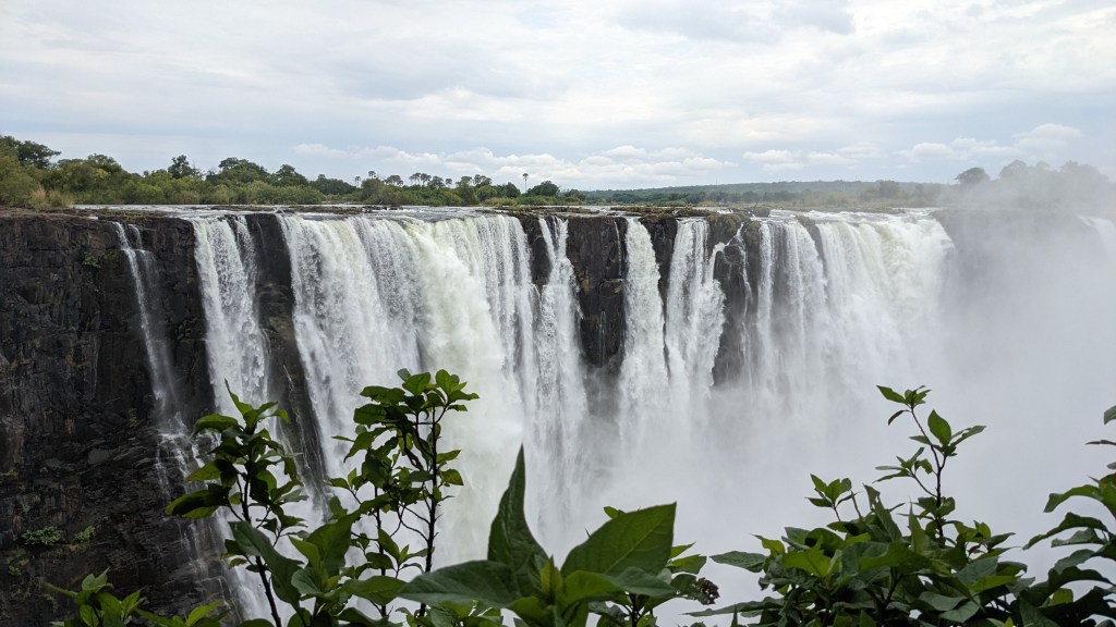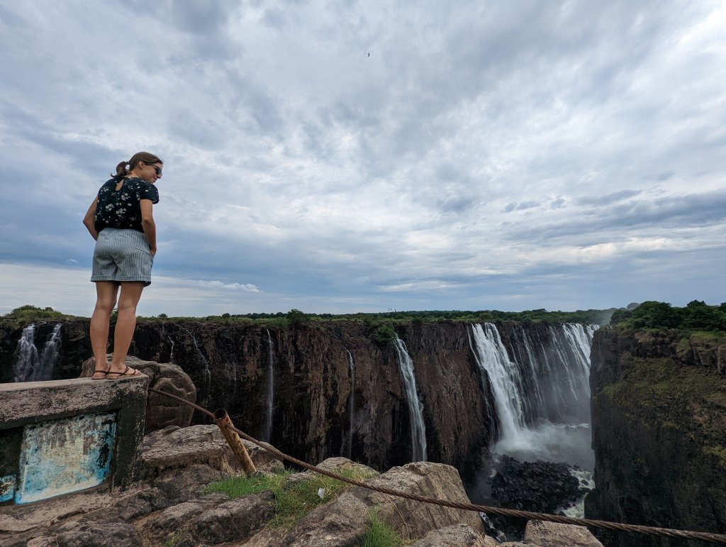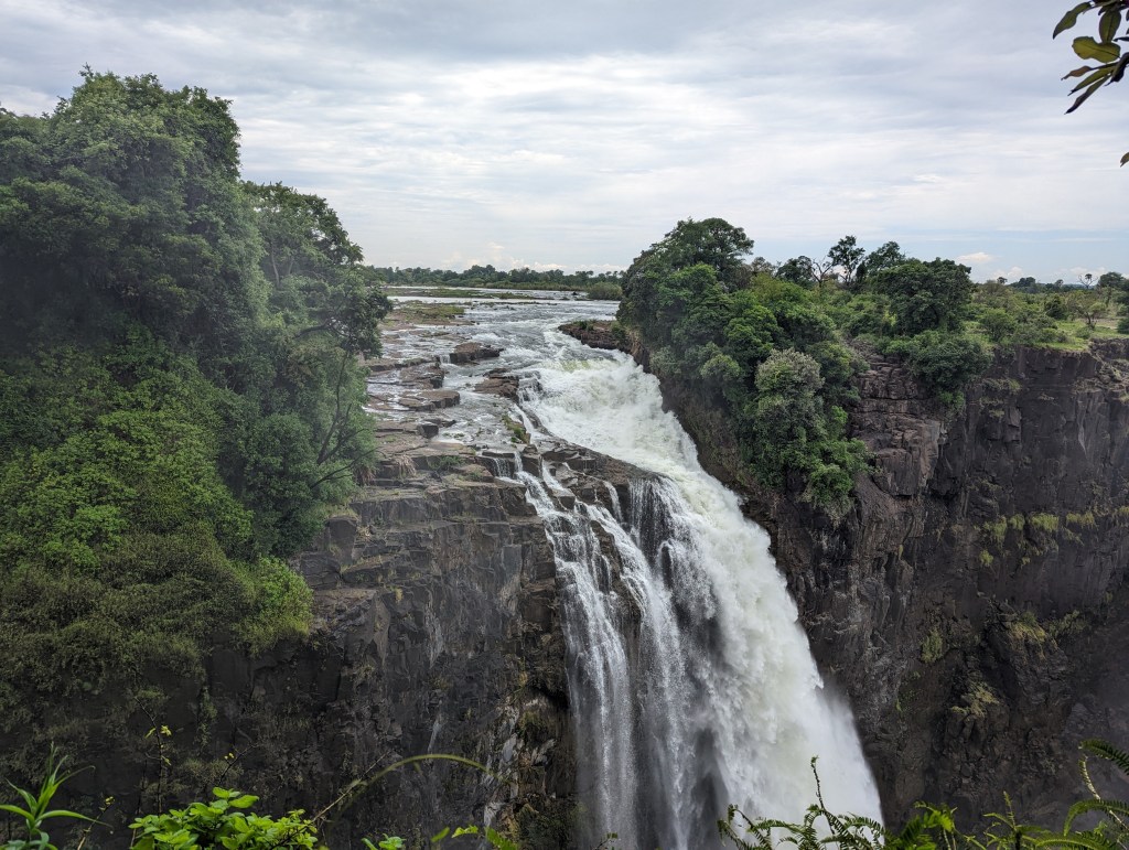 Schlussendlich war unser letzter Halt in Simbabwe bei den Victoria Falls. Dieser Wasserfall ist der zweithöchste auf der ganzen Welt und hat ca. 100 Meter. Es war beeindruckend das ganze Wasser in die Tiefe sausen zu sehen. An der Stelle, an der der Wasserfall am stärksten war, wurden wir sogar komplett nass, weil es so gespritzt hat. Das war wirklich lustig.