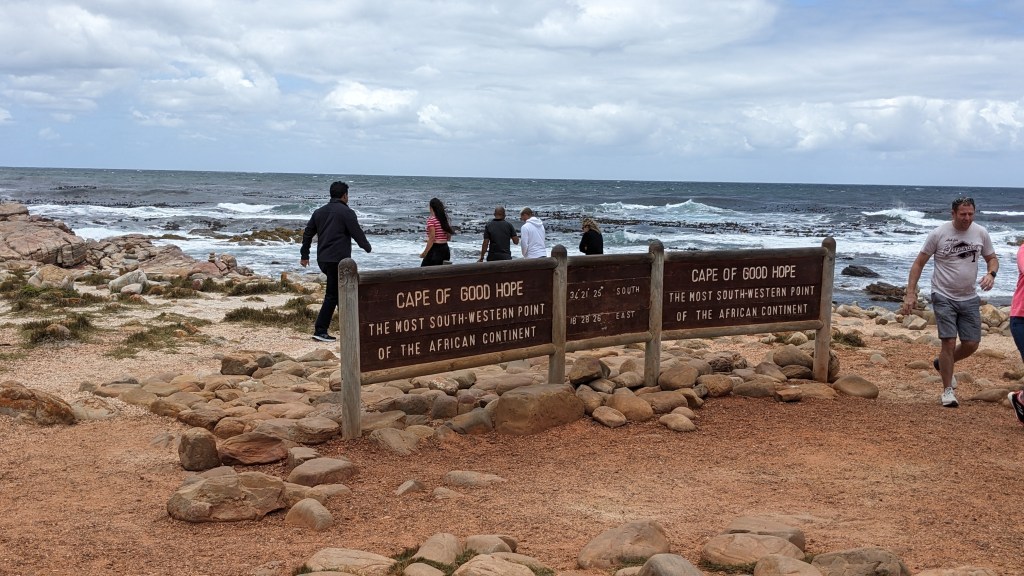 Unser erstes großes Ziel war gleich einer der bekanntesten Orte von Südafrika bzw. ganz Afrika. Ich kann mich noch sehr gut daran erinnern, als wir in der Hauptschule davon gelernt haben, da habe ich mir schon gedacht „Irgendwann will ich dorthin“ und an diesem Tag hat sich mein Traum erfüllt – wir waren beim Kap der guten Hoffung! Es ist ein unbeschreibliches Gefühl wenn man einen so bekannten Ort dann tatsächlich bereist und die Umgebung fühlen kann. Das Wetter war der Wahnsinn, extrem windig – ich würde mich als Seefahrerin nicht trauen da in ein Boot zu steigen. Es sind in dieser Gegend auch tatsächlich viele Schiffe gekentert und wenn man da so steht und den Wind spürt, kann man sich das gut vorstellen und versteht auch warum dieses Kap „Kap der guten Hoffnung“ heißt.