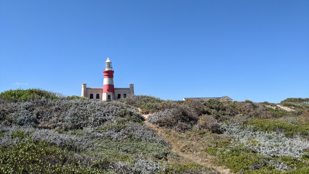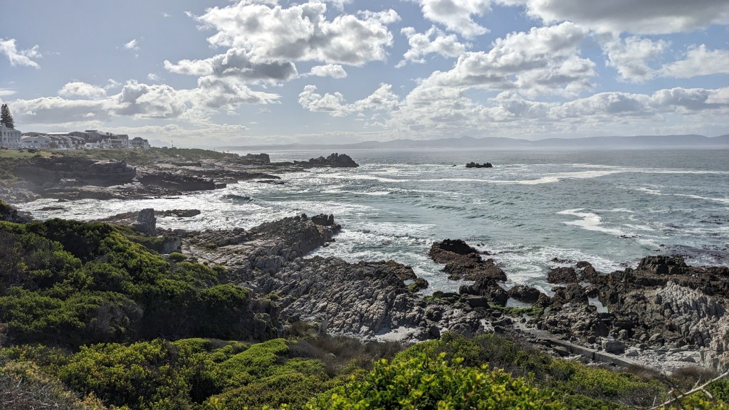 Entlang der Garden Route haben wir mehrere Zwischenstopps gemacht. Wir haben die einzigartige Natur bewundert und genossen. Wir waren immer in Küstennähe und so haben wir in Hermanus einen tollen Klippen-Wanderweg entdeckt. Wir waren am südlichsten Punkt von Afrika, merkwürdig wenn man bedenkt, dass sich zumindest theoretisch hier der indische und atlantische Ozean treffen. Wir haben auch einen Leuchtturm besichtigt – das erste Mal war ich in einem Leuchtturm. Der Scheinwerfer da oben ist riesengroß, das kann man sich gar nicht vorstellen, wenn man herunten steht oder einen Leuchtturm von der Ferne besichtigt.