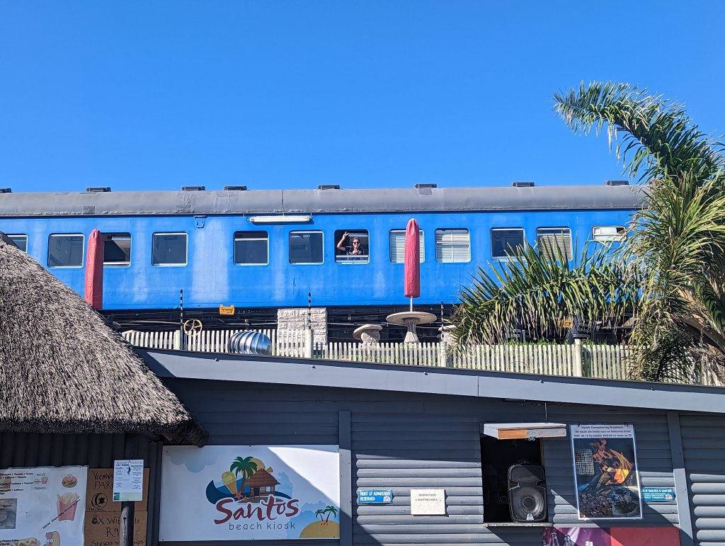 In Mossel Bay hatten wir eine total coole Unterkunft, da haben wir in einem alten Zug geschlafen. Die Kabinen konnte man noch erkennen und die Aussicht auf das Meer war traumhaft. Wir konnten sogar vom Bett aus Delfine sehen, das war ein besonderes Highlight. Der wohl schönste Strand war in Wildernes. Wir haben noch nie einen so großen, breiten und weiten Strand gesehen. Es war allerdings wieder eine Klippe und man musste zuerst unzählige Treppen hinabsteigen um zum Meer zu gelangen. Von der Klippe oben hatte man dafür einen Traum-Ausblick und wir konnten ganz viele Delfine sehen, noch nie haben wir so viele Delfine auf einmal gesehen.