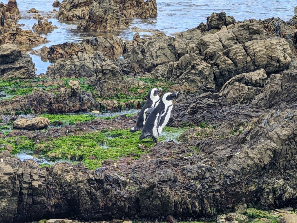 Wir fuhren natürlich auch zu den Pinguinen. Die haben wir in Betty’s Bay besucht und es war so lustig. Noch nie haben wir wild und frei lebende Pinguine gesehen. Sie watscheln so lustig herum und man könnte die ganze Zeit lachen, wenn man sie beobachtet.