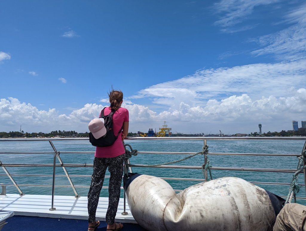Die Überfahrt vom Festland zur Insel war sehr kompliziert. Zuerst nahmen wir Tuktuks, die uns zum Hafen brachten. Dann nahmen wir eine riesengroße Fähre, die uns übers Wasser brachte. Auf der anderen Seite wartete ein Bus auf uns, der uns dann erst zur richtigen Fähre brachte. Mit dieser fuhren wir nochmal ca. 1,5-2 Stunden. In Sansibar angekommen, musste uns dann wieder ein Bus zur Unterkunft bringen. In der Gruppe so einen Transfer zu absolvieren, ist wirkllich anstrengend. Wir haben uns sehr gefreut, als wir endlich gut angekommen sind.