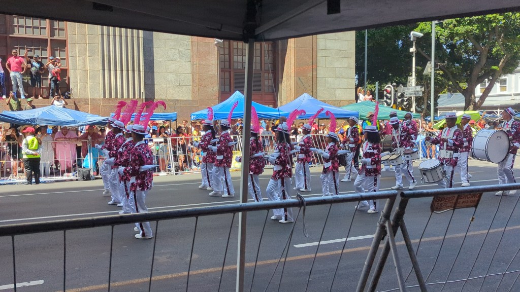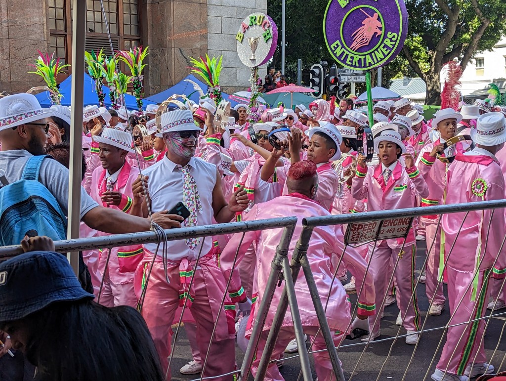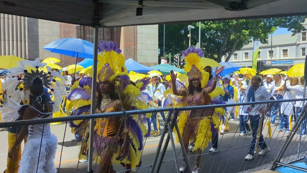 Am 2. Jänner war Kapstadt in einem völligen Ausnahmezustand. Es wurde nämlich der Feiertag der Sklaven gefeiert und in der ganzen Stadt fand ein riesengroßer Karneval-Umzug statt. Früher hatten die Sklaven nur einmal im Jahr, am 2. Jänner frei und konnten feiern wie sie wollten und daran wird bis heute gedacht und deshalb auch gefeiert. Die Einheimischen haben entlang der Straße Pavilions aufgestellt und dort den ganzen Tag verbracht und gefeiert. Es war ein total interessantes Spektakel.