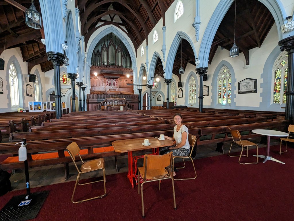 Ein paar Tage später hatten wir unseren ganz persönlichen Feiertag. Am 4. Jänner 2023 hatten wir Jahrestag unserer Weltreise. Unglaublich, dass wir nun schon ein Jahr unterwegs waren. Wir sind so froh, den Schritt gewagt zu haben und unendlich dankbar für all die Erfahrungen und Erlebnisse, die wir gemacht haben. Jeder Tag war ein kleines Abenteuer und so schön. Zur Feier des Tages waren wir in einem Café, das in einer aktiven Kirche ist. Das war ein sehr spannendes Gefühl in einer Kirche gemütlich Kaffee zu trinken.
