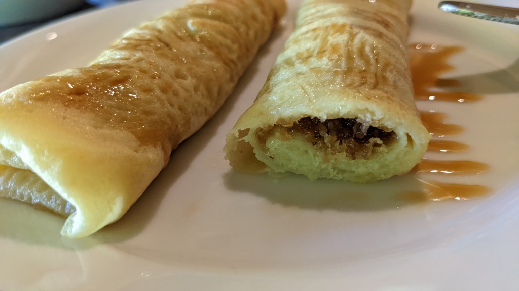 Die Gerichte in Sri Lanka haben unseren Gaumen sehr verwöhnt. Reis und Curry ist ein traditionelles Gericht. Es werden verschiedenste Currys gekocht, am bekanntesten ist wohl das Dhal-Curry. Das wird von den Einheimischen schon zum Frühstück gegessen. Manchmal haben wir auch einen Sri Lankan Pancake bekommen – das ist eine leckere Palatschinke, die mit karamellisierten Kokosflocken gefüllt ist.